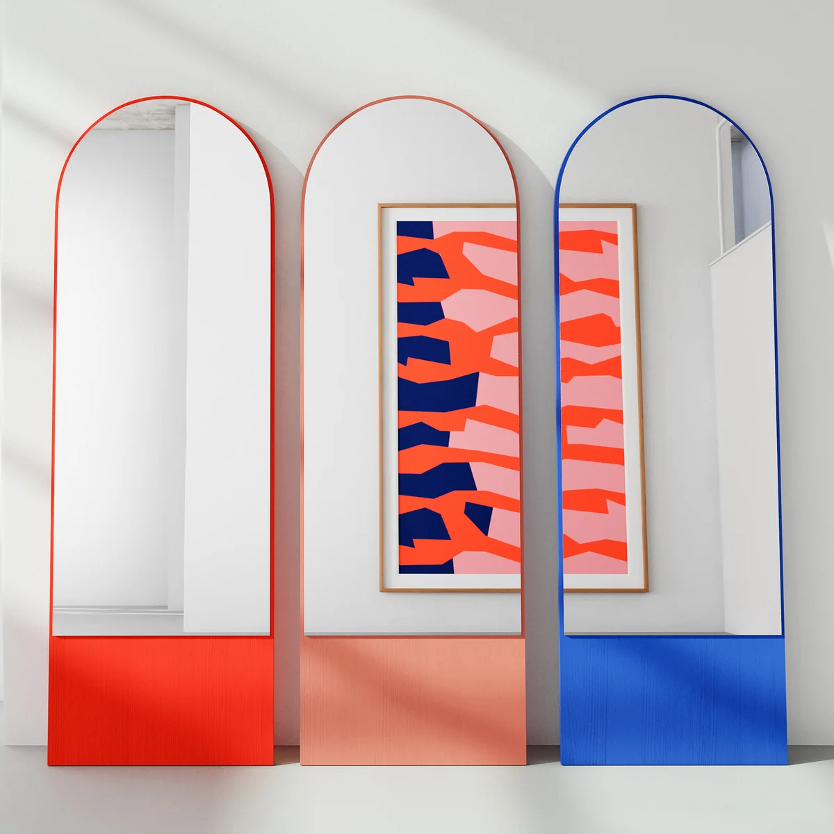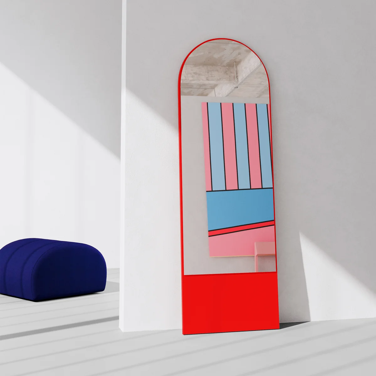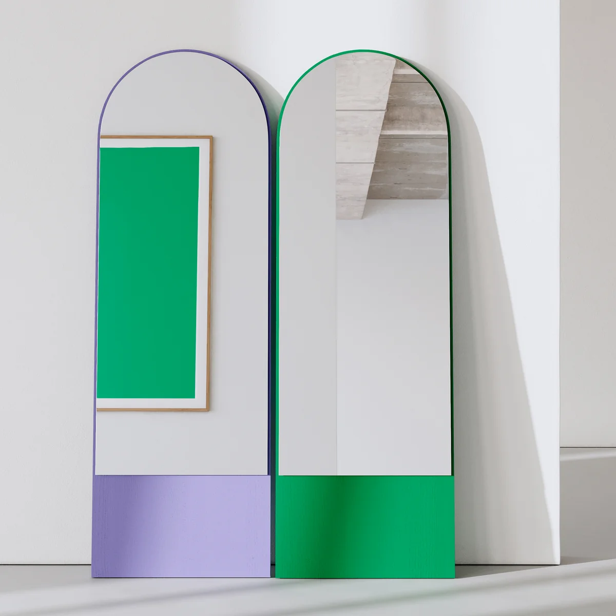 Die Silhouette ist geprägt von dem Renaissance-üblichen Rundbogen der frühen 2020er-Jahre. Der Spiegel erhebt einen grossen Anspruch von Funktionalität und Ästhetik, der kompromisslos in jeder Ausführung des Friedrich Spiegels bewahrt wird. Die stimmigen Proportionen von Spiegelglas zu lackiertem Eschenfurnier schaffen ein Gesamtbild, das sich je nach Farbwahl stilvoll in jede Wohneinrichtung einfügt oder mit markanter Präsenz den Raum bereichert. Der Friedrich 21 Spiegel wirkt besonders ästhetisch, wenn er an der Wand befestigt wird. Er kann aber auch zwanglos an die Wand angelehnt werden.