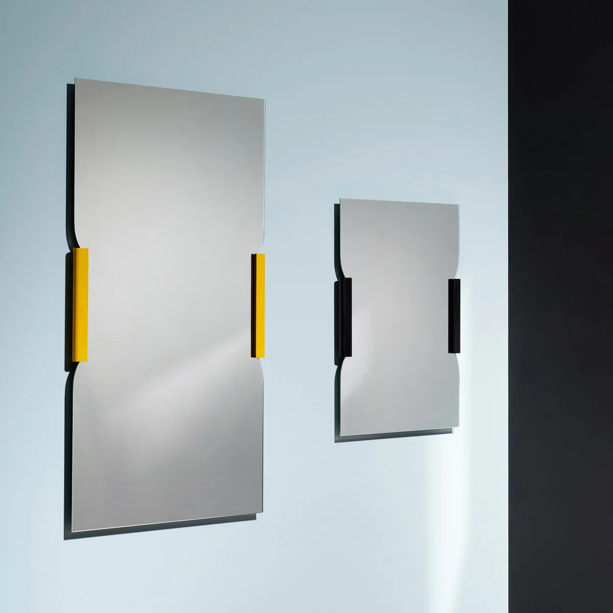 Die besondere Form ist ein eleganter Eyecatcher – und je nach Farbe der Leisten kann sie noch zusätzlich betont werden. Mit seinem klaren Look passt der Wandspiegel Brace von Martha Schwindling in jeden Raum, in die private Diele ebenso wie in Büros, Wartezimmer oder Hotels.