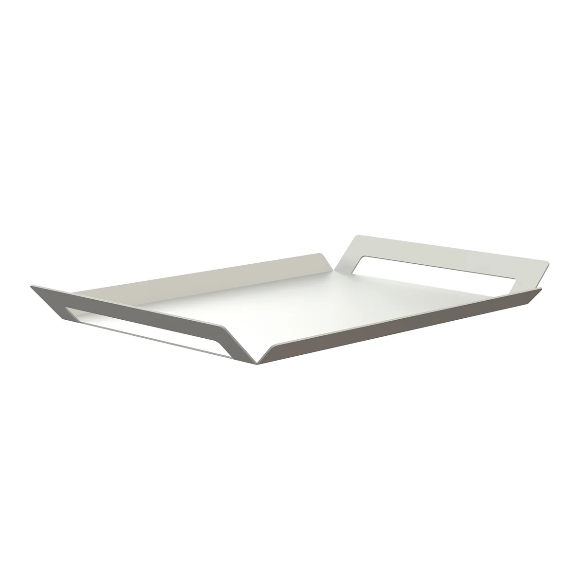 Aus Aluminium gefertigt und anschliessend lackiert, ist das Tablett in verschiedenen Farbvarianten erhältlich.