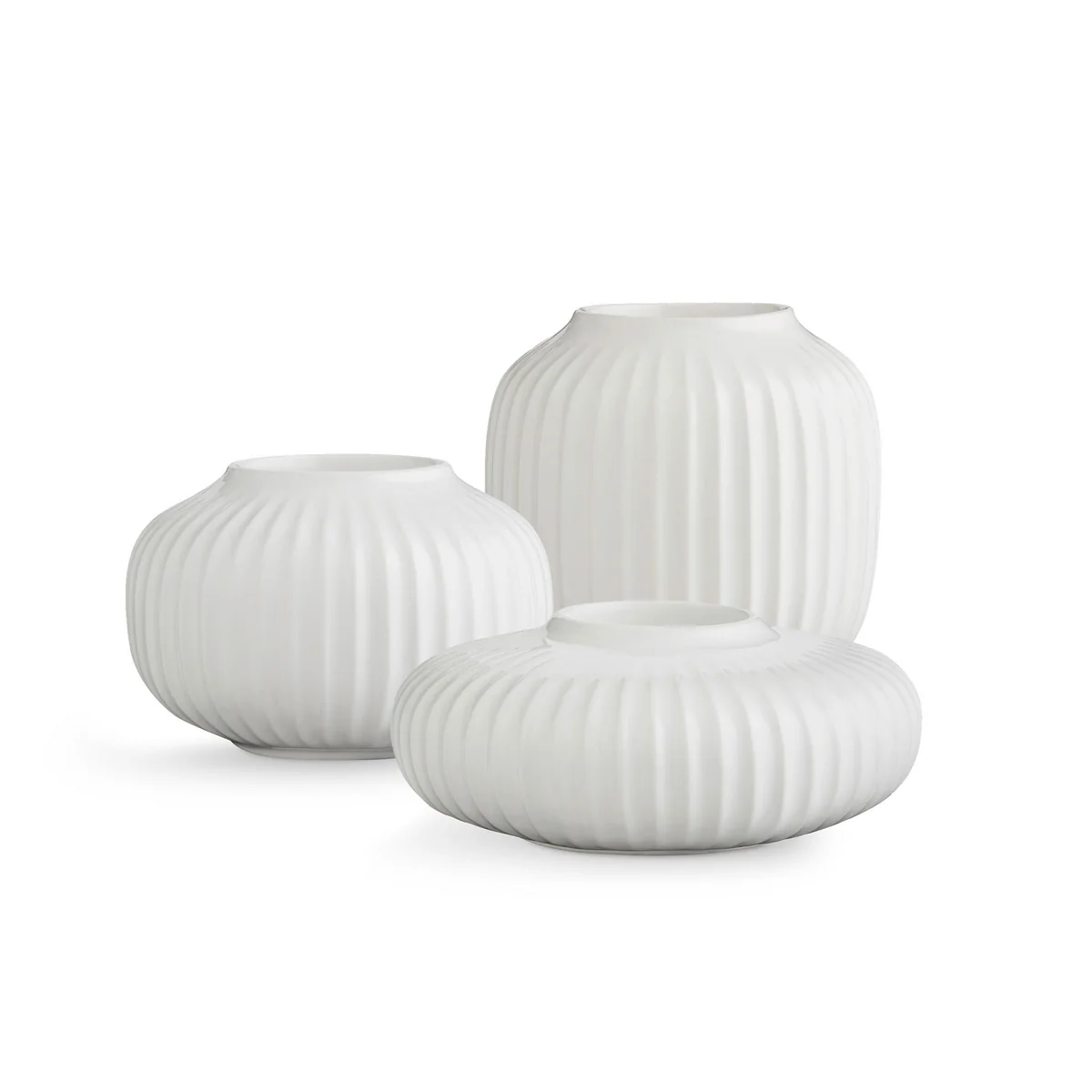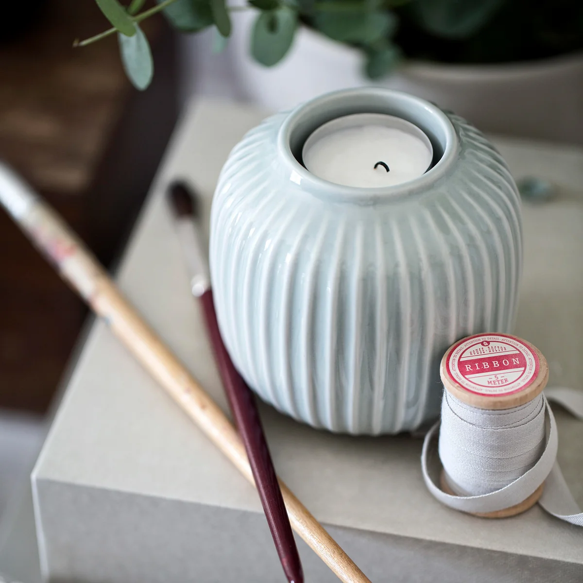 Die charakteristischen Rillen von Hammershøi finden sich auch in dem Teelichthalter von Kähler wieder und in allen anderen Objekten der Serie, ganz gleich, welche Farbe, Form oder Funktion die Artikel auszeichnen.