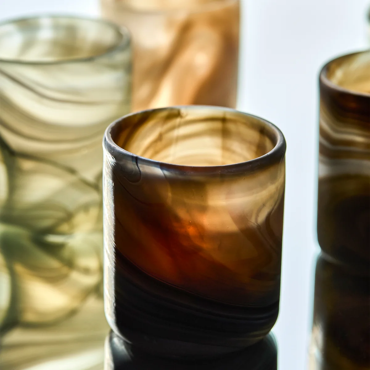 Die Kae Teelichthalter von House Doctor setzen stilvolle Akzente und bringen durch ihr mundgeblasenes Glas ein lebendiges Lichtspiel in Ihr Zuhause. Jedes Stück ist ein Unikat, geprägt von einem feinen, marmorierten Design, das Wärme und Eleganz ausstrahlt. Ob auf dem Esstisch, im Wohnzimmer oder im Bad – die Teelichthalter schaffen eine gemütliche Atmosphäre und laden zum Verweilen ein. Dank ihrer hochwertigen Verarbeitung sind sie dekorativ und funktional zugleich.