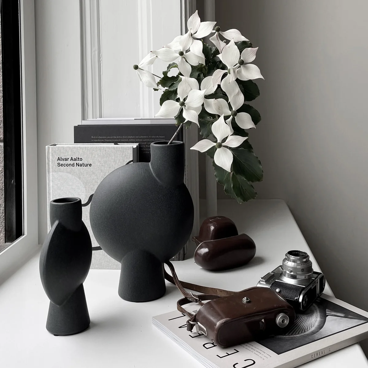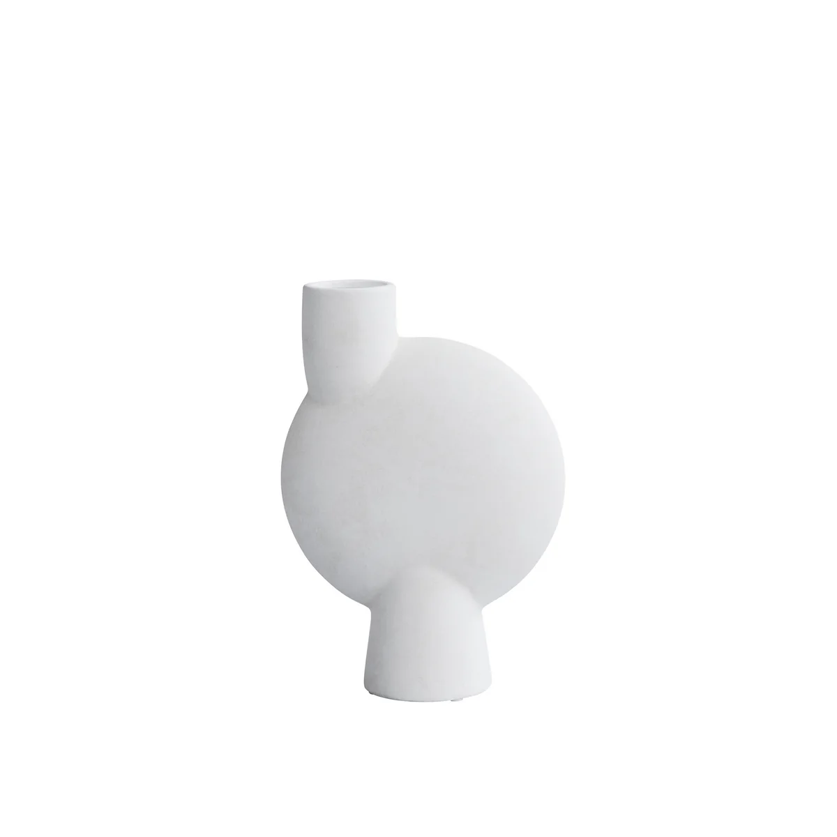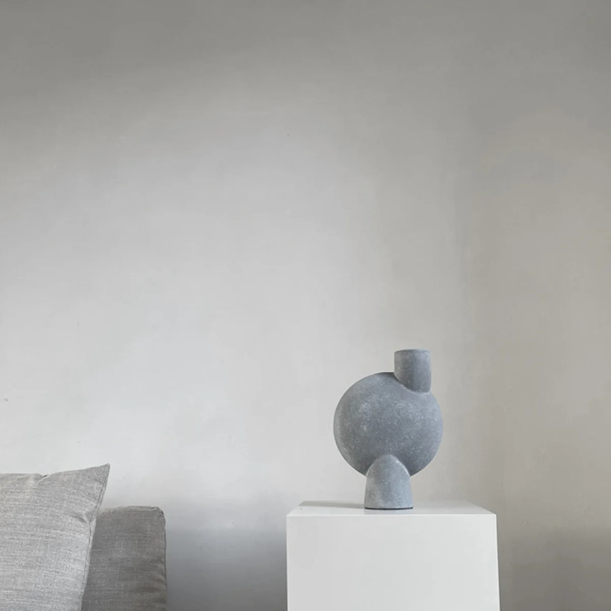 Die Sphere Vase Bubl Medio von 101 Copenhagen ist das erste Design des dänischen Herstellers. Sie verbindet traditionell chinesische Vasen-Stile mit einem bildhauerischen Ausdruck, der jedem Raum einen künstlerischen Touch verleiht. Wie der Name Bubl schon sagt ist ihr Körper rund – aber nur von vorne. Von der Seite ist sie flach.