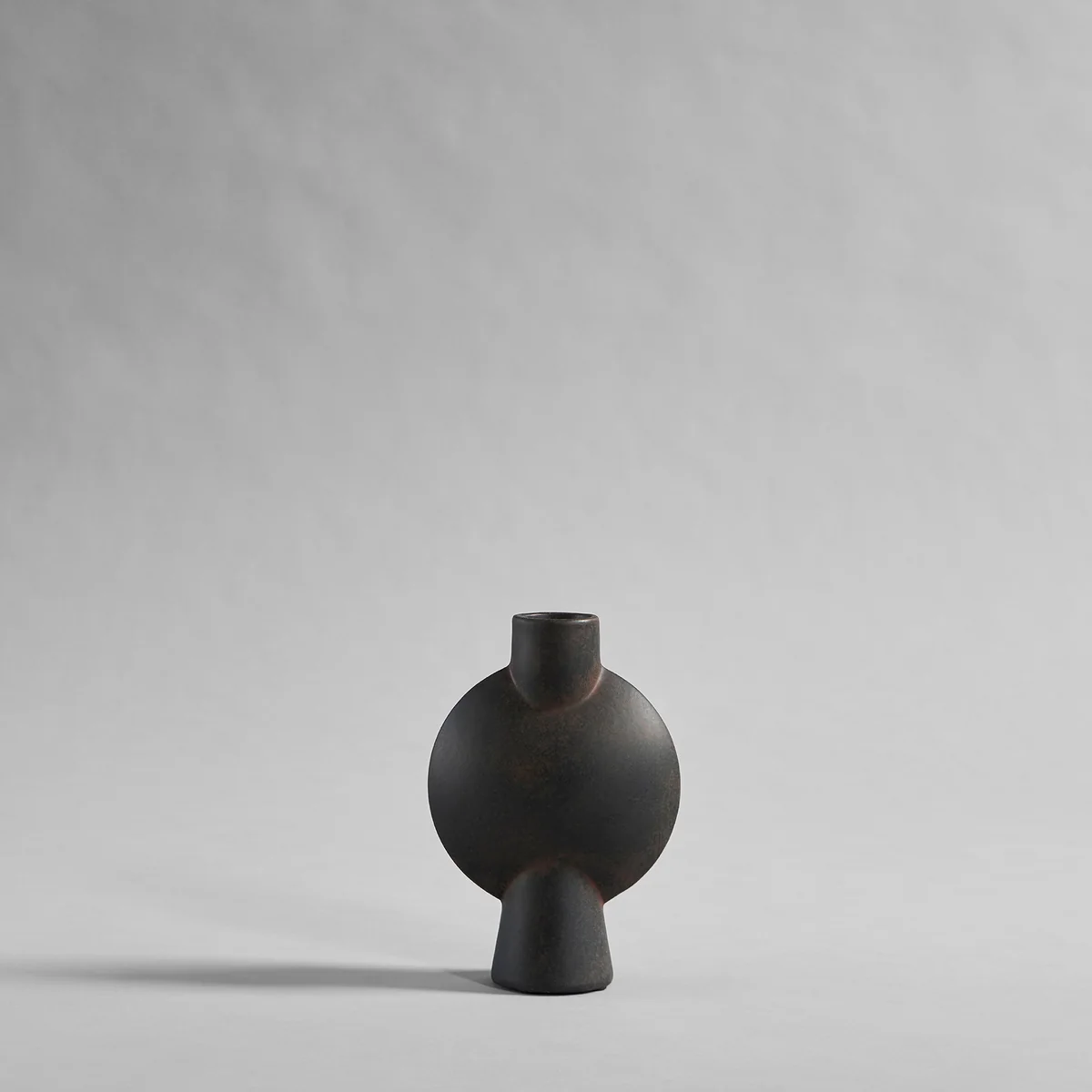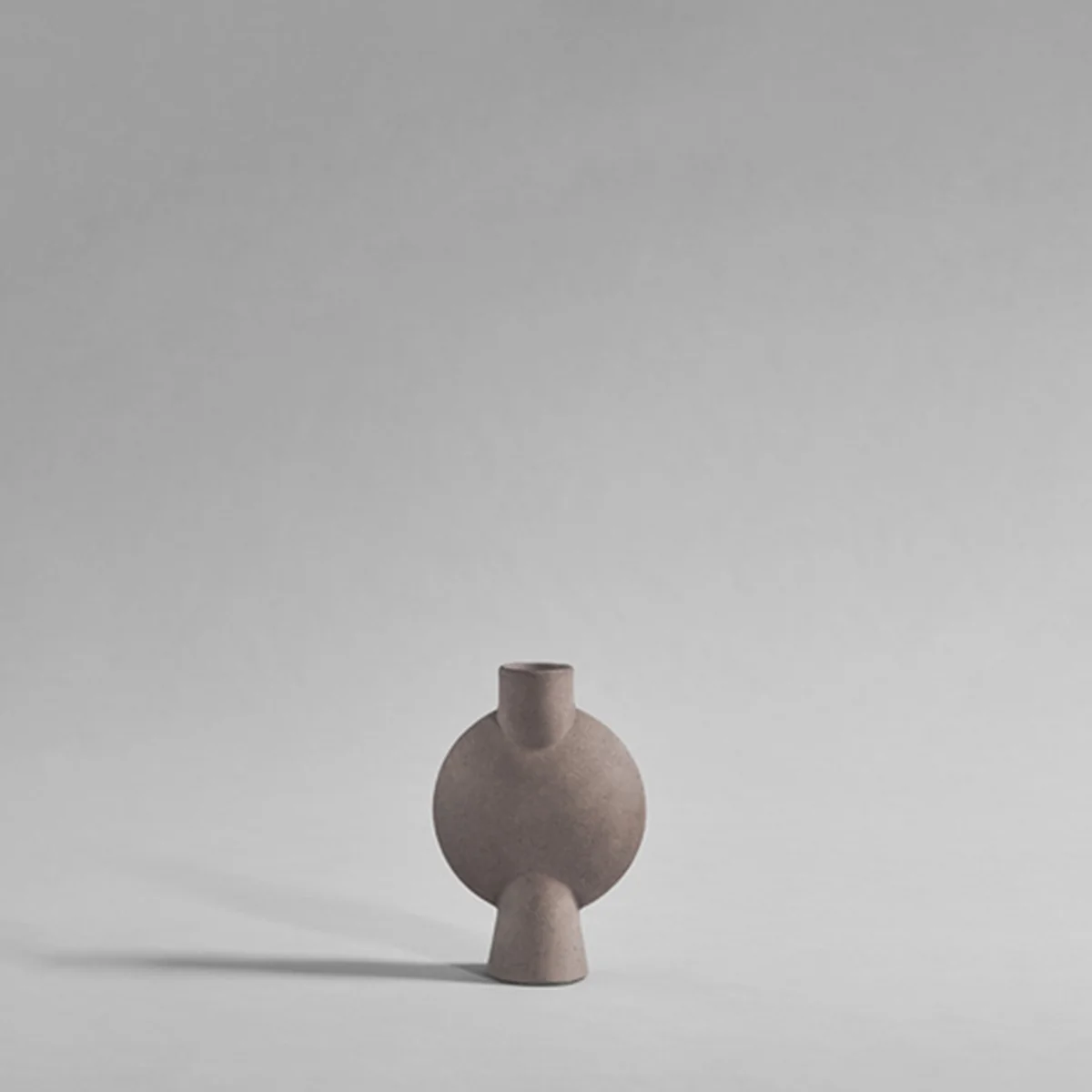 Die Sphere Vase Bubl Mini von 101 Copenhagen ist inspiriert von alten chinesischen Vasen und zeigt sich daher in verblassten Erdtönen, die zu so ziemlich allen Wohnstilen passen. Ihr elegant geformter Körper erinnert von vorne an eine Kugel – daher auch der Name Bubl – von der Seite aber ist die flache Form der Vase zu erkennen.