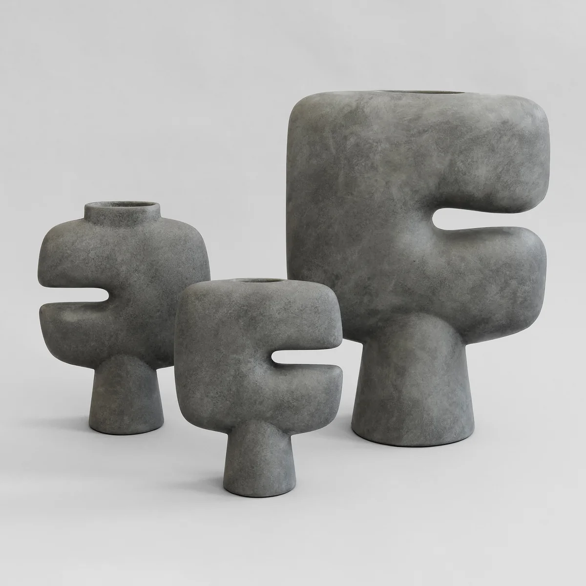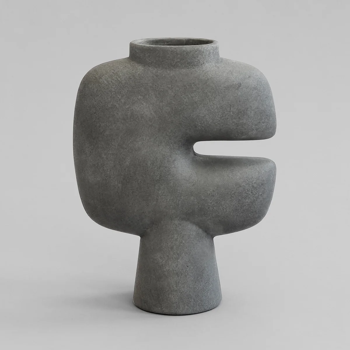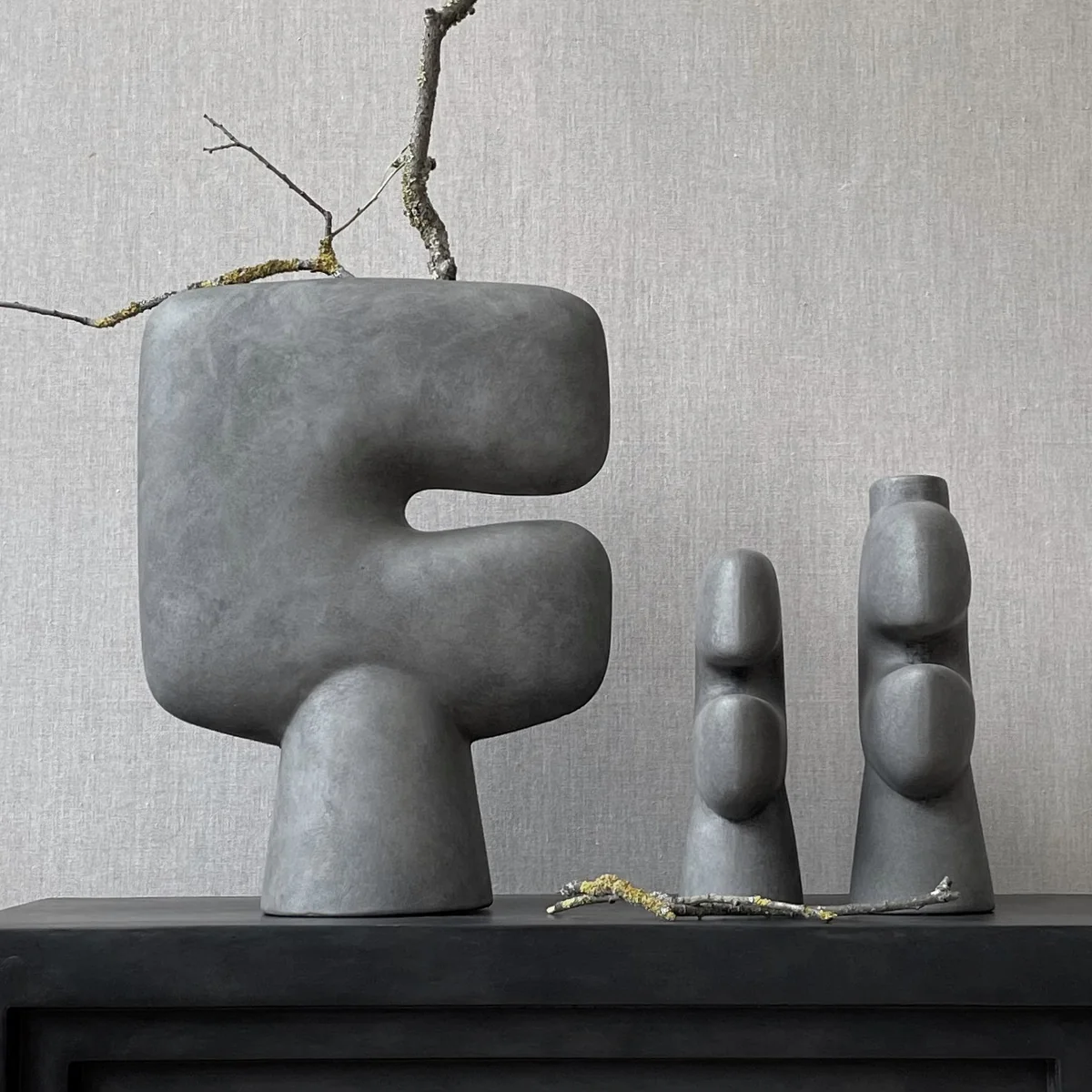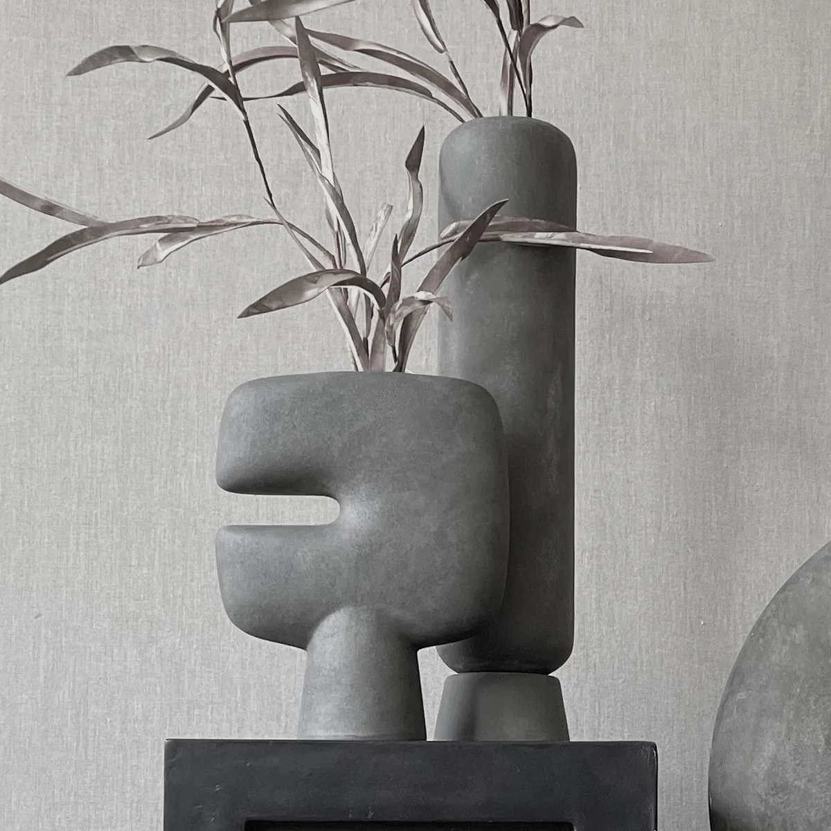 Die Tribal Vase von 101 Copenhagen, die als skulpturale Umsetzung der archetypischen Idee einer Stammesmaske entworfen wurde. Die Vase kann mit einzelnen Blumen besteckt, aber auch als einzelnes skulpturales Element den Raum verschönern. Wie offene Münder auf Sockeln sind die Vasen ein wunderschönes Formstück in beruhigenden Grautönen. Da es sich um ein handglasiertes Naturprodukt handelt, können die Farben von Produkt zu Produkt leicht variieren.