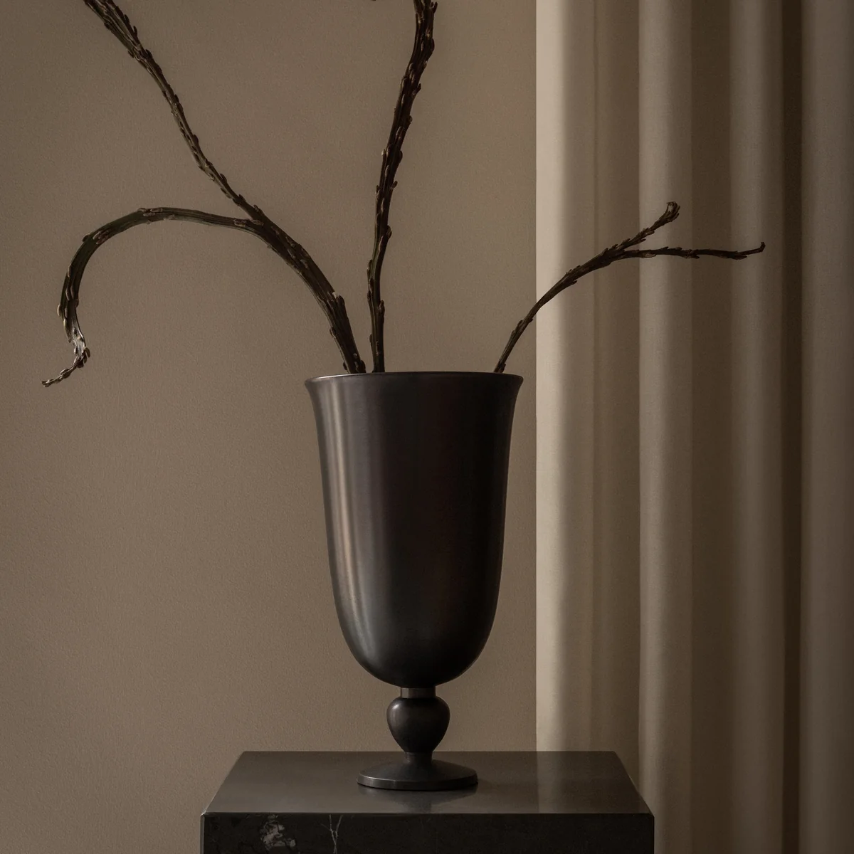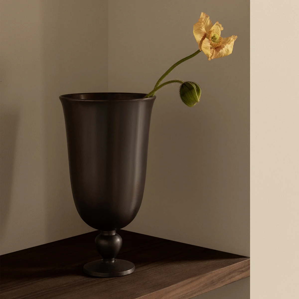 Die Pavot Vase von Audo verbindet antike Einflüsse mit modernem Design und verleiht jedem Raum eine elegante, geschichtsträchtige Note. Gefertigt aus Aluminium und mit einer charakteristischen bronzebraunen Patina veredelt, erinnert die Form des Fusses an eine filigrane Mohnkapsel – eine subtile Hommage an die organische Schönheit der Natur, die der Vase ihren französischen Namen verleiht.