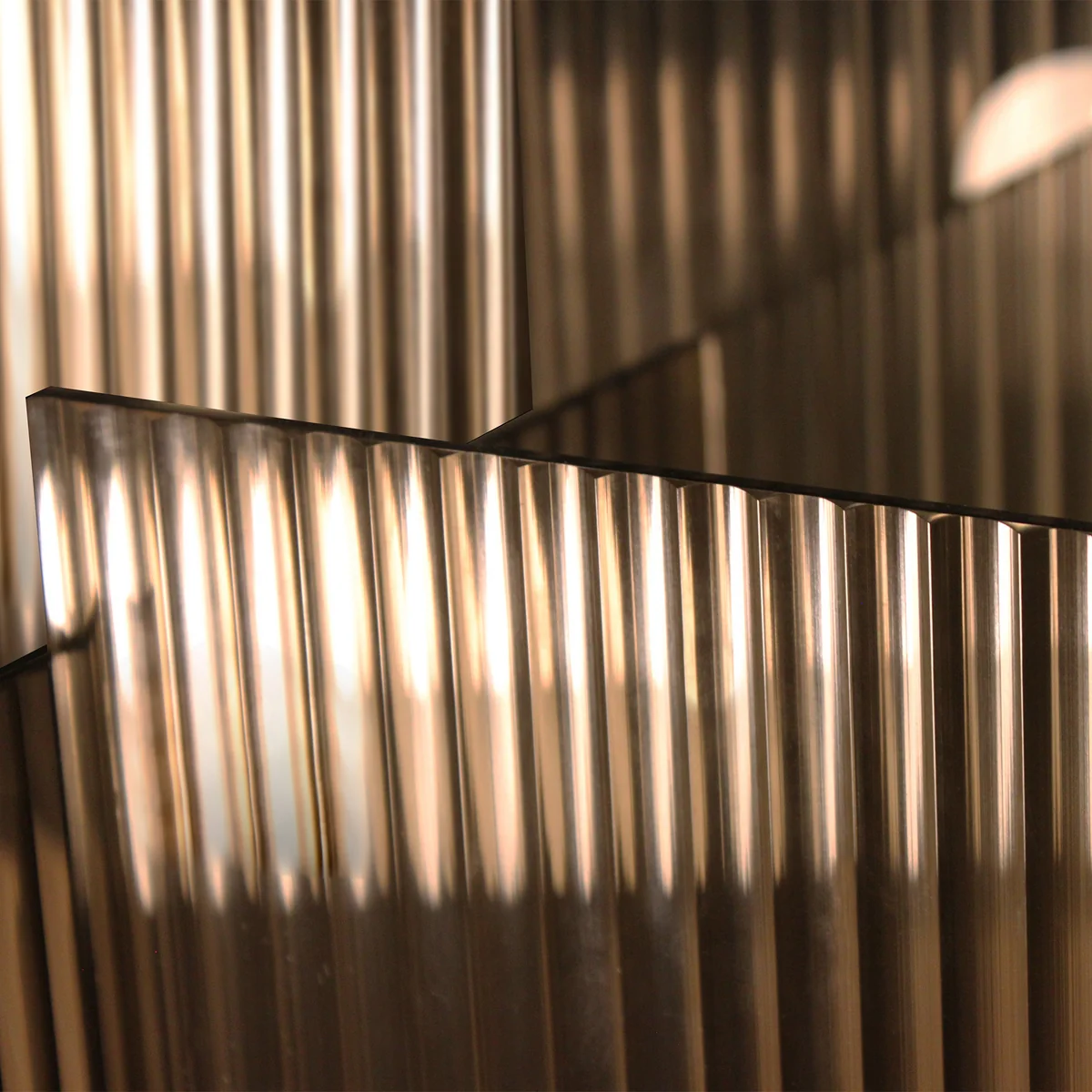 Flos besteht aus geriffeltem Glas in einem natürlichen Taupe-Ton, der zu jedem Teil des Hauses passt - sogar zu einer Terrasse im Freien. Was Pflanzen angeht, so machen sich grosse Blumenarrangements, aber auch Palmen wunderbar in der Vase.