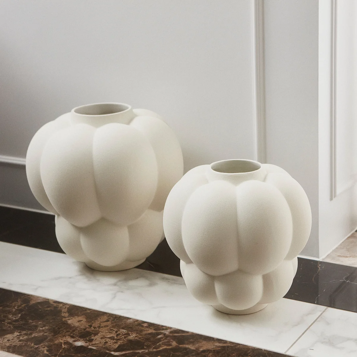 Die UVA Vase von AYTM fasziniert durch die voluminöse Form und funktionale Exzellenz. Das Wort UVA steht für Traube und definiert die Form der Vase, die an eine Weinpflanze erinnert und exquisite Details setzt. Die lebendigen Kurven lassen Äste oder Blumen schön ausstellen und können individuell geziert werden. In unterschiedlichen Ausführungen erhältlich, wird die Vase schnell zum Lieblingsstück der Einrichtung.