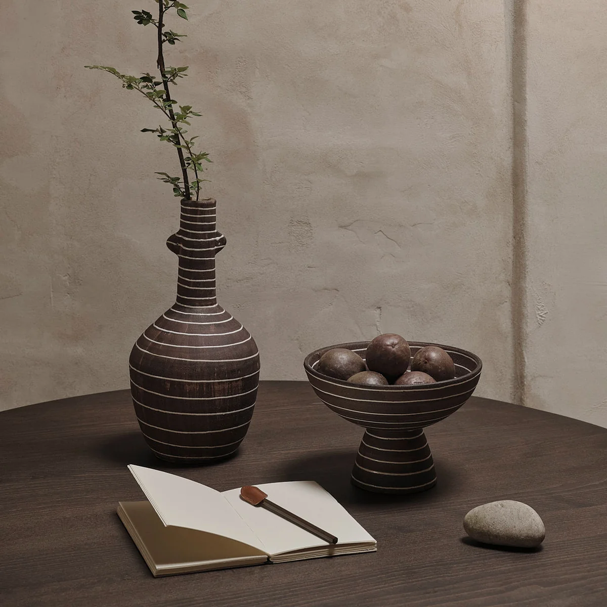 Die Brura Vase von Ferm Living ist ein stilvolles Dekorationselement, das durch seine einzigartige Kombination aus Material und Design besticht. Gefertigt aus hochwertiger Terrakotta, verleiht die Vase jedem Raum eine warme, natürliche Note. Ihr besonderes Highlight sind die handbemalten Streifen, die der Vase eine moderne, grafische Ästhetik verleihen und gleichzeitig einen Hauch von handwerklicher Authentizität vermitteln. Die Brura Vase eignet sich sowohl für frische Blumenarrangements als auch als eigenständiges Kunstobjekt, das in jeder Einrichtung einen Blickfang darstellt.