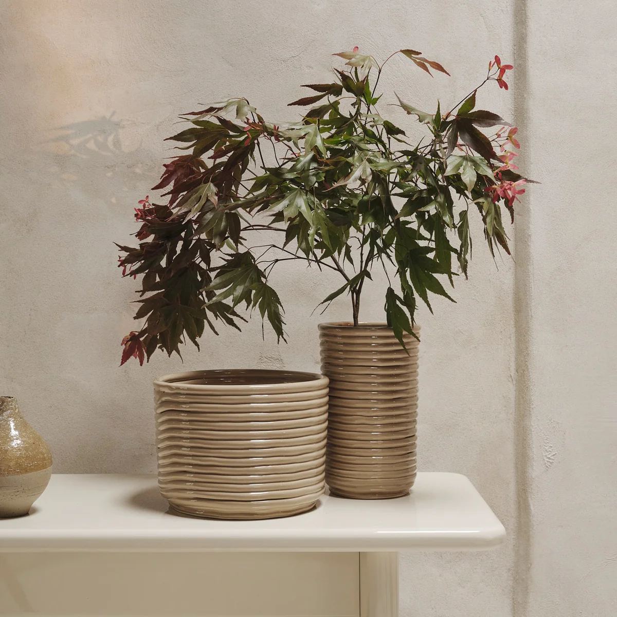 Die Corduroy Vase von Ferm Living vereint natürliche Eleganz mit einer modernen Textur und ist ein stilvolles Accessoire für Ihr Zuhause. Gefertigt aus glasierter Keramik, besticht die Vase durch ihr einzigartiges Rillendesign, das an klassische Kordstoffmuster erinnert und dem Objekt eine besondere Tiefe verleiht. Mit ihrer schlanken, formschönen Silhouette eignet sich die Corduroy Vase perfekt zum Präsentieren einzelner Blumen oder kleiner Sträusse. Erhältlich in verschiedenen Farben, fügt sie sich harmonisch in jede Einrichtung ein und setzt dabei dekorative Akzente.