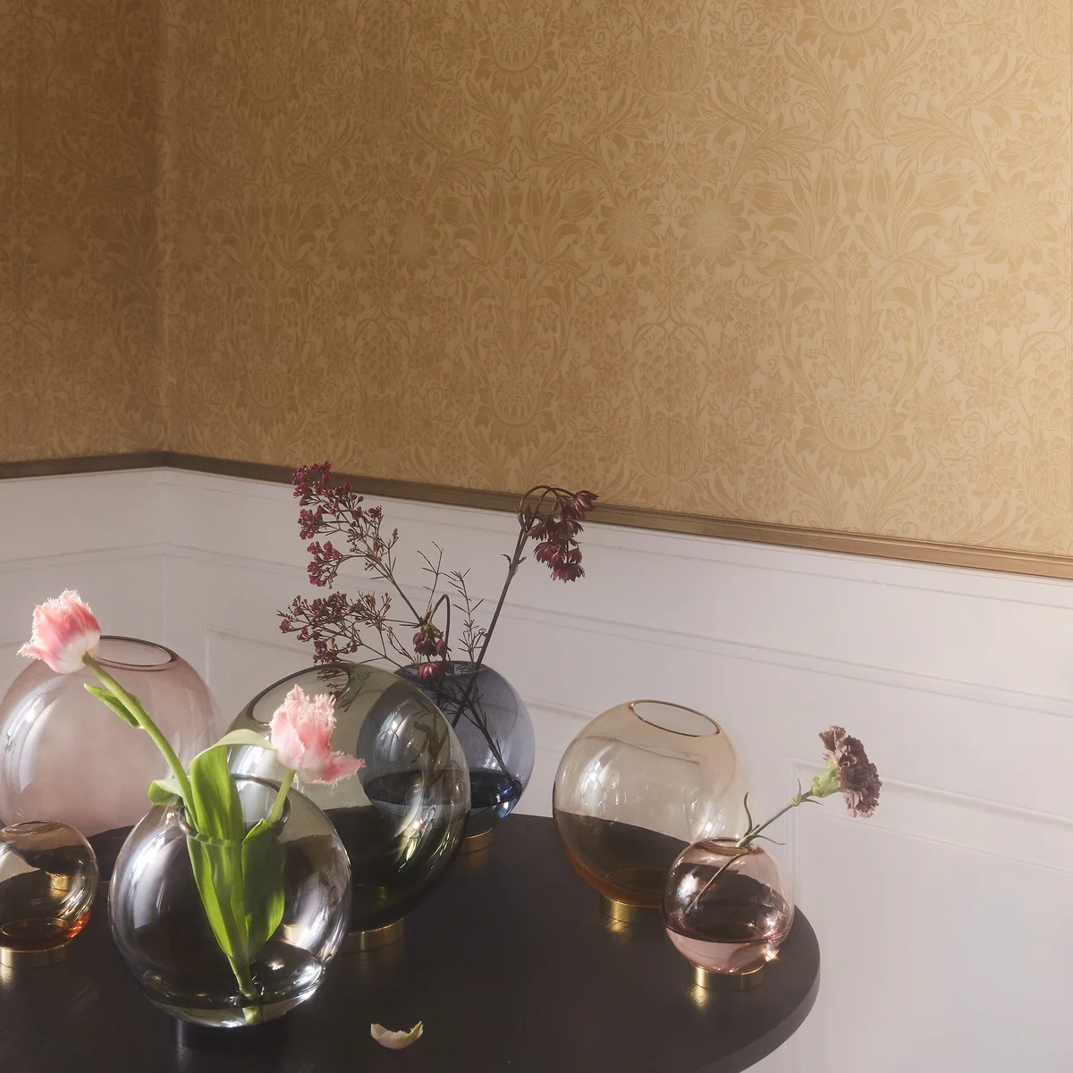 Die Globe Vase von AYTM zeichnet sich durch ihre ganz besondere Form aus. Aus Glas gefertigt, thront das globusförmige Gefäss auf einem flachen Sockel aus Messing oder Aluminium. Die Öffnung im Glas eignet sich hervorragend zum Arrangieren von Blumen, einzelnen Blättern oder Zweigen. Doch auch Raumduftstäbchen und selbst Süssigkeiten lassen sich in der Glaskugel stilvoll in Szene setzen.