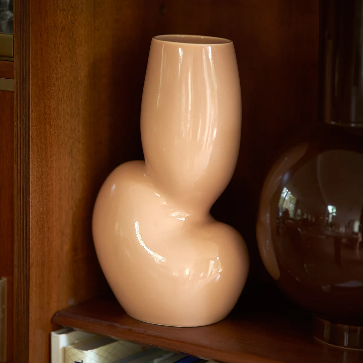 Die Keramik Vase Organic von HKliving ist von den organischen Formen der Natur inspiriert. Mit ihrem skulpturalen Design wirkt sie für sich allein wie ein Kunstobjekt, kann aber auch mit einzelnen Blumen oder Gräsern ergänzt werden.