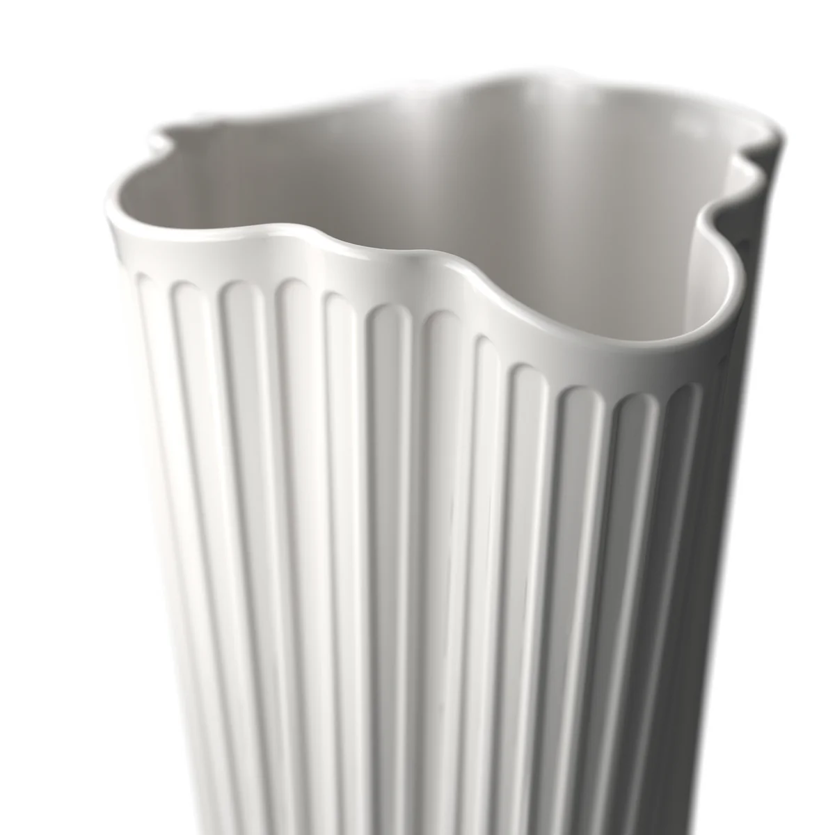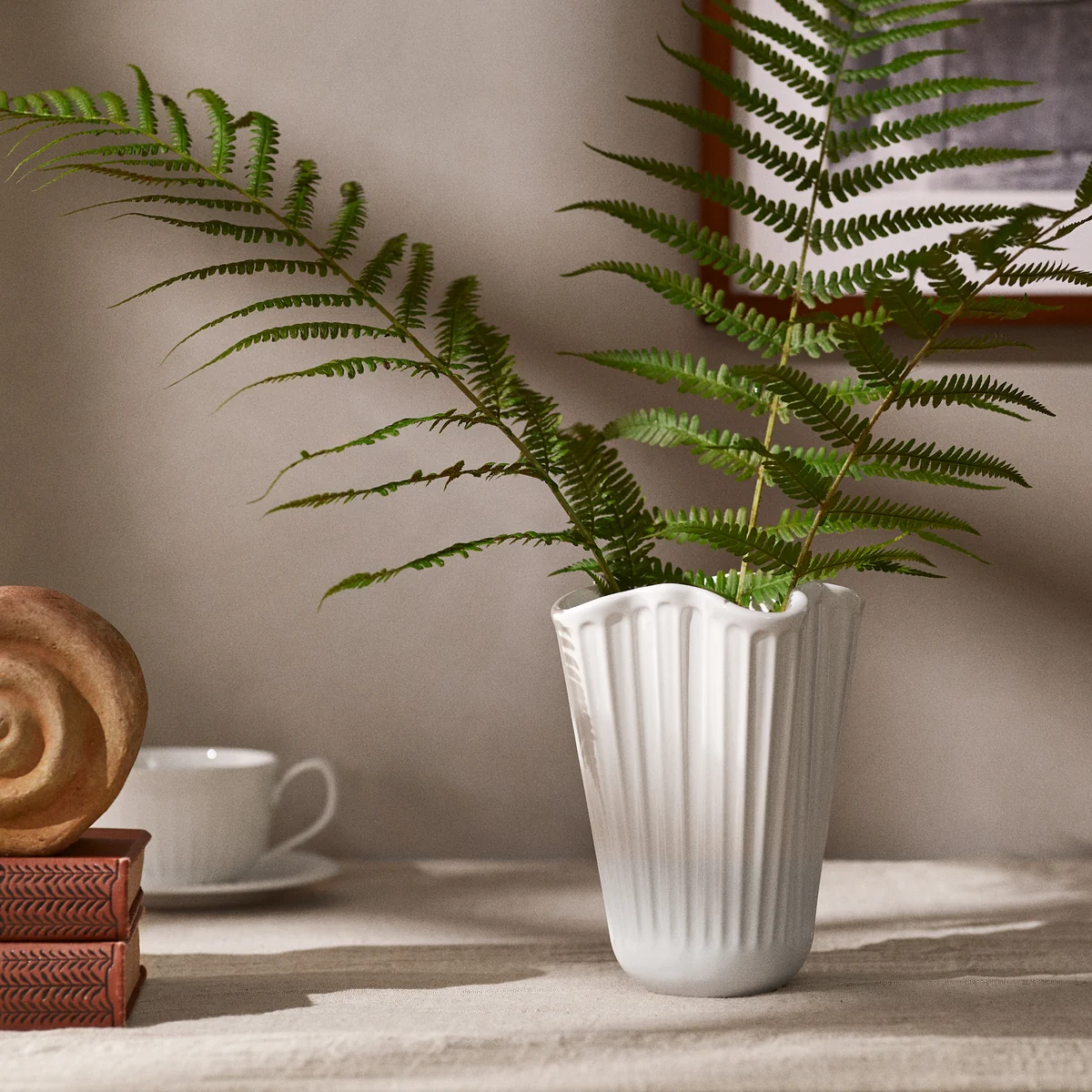 Gefertigt aus hochwertiger, kreideweisser Keramik, ist die Hammershøi Unfold Vase in zwei Grössen erhältlich: 16,5 cm und 20,5 cm. In Kombination entstehen harmonische Arrangements für frische Blumen oder dekorative Zweige. Die Vase fügt sich stilvoll in verschiedene Wohnambiente ein und bringt eine nostalgische, zugleich zeitgemässe Note in jedes Zuhause.
