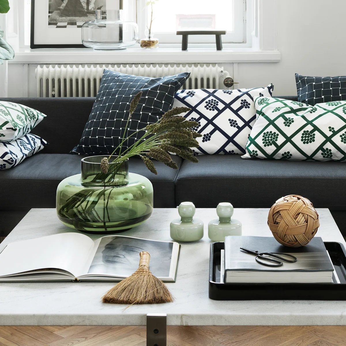 Die Urna Vase von Marimekko überzeugt durch den aussergewöhnlich wuchtigen Bauch und die grosse Öffnung, die sich optimal dazu eignet, einen üppigen Blumenstrauss zu präsentieren. Der Entwurf zu der Vase stammt von Carina Seth-Andersson.