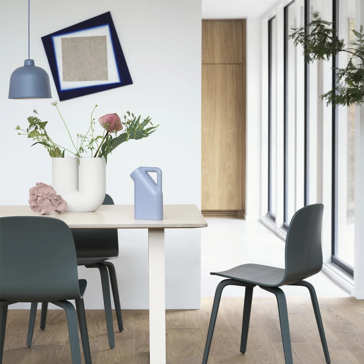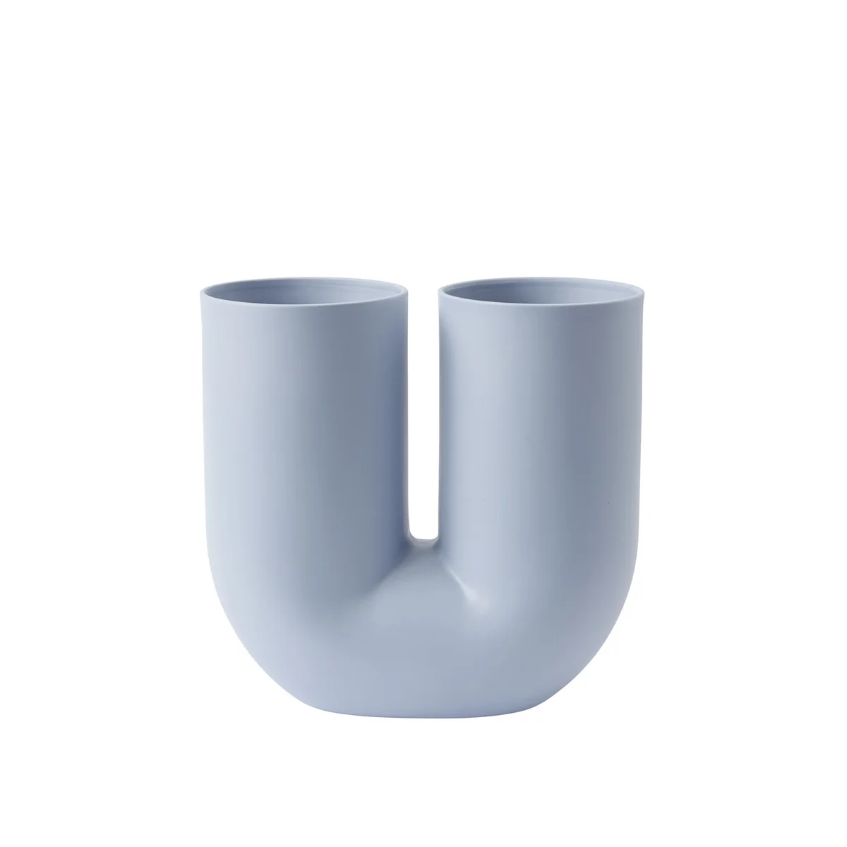 Die ausgefallene, gebogene Form der Kink Vase von Muuto bietet zwei Öffnungen, in denen einzelne Blüten und Blumen dekorativ angeordnet werden können. Aber auch wenn die Vase nicht benutzt wird, überzeugt das Design mit einem dekorativem Charme.