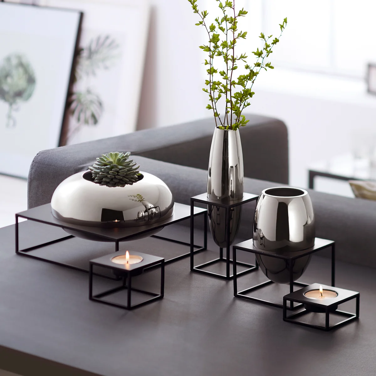 Die Vase wird aus hochglanzpoliertem Nickel hergestellt. Die Solero Vase ist in verschiedenen Ausführungen erhältlich.
