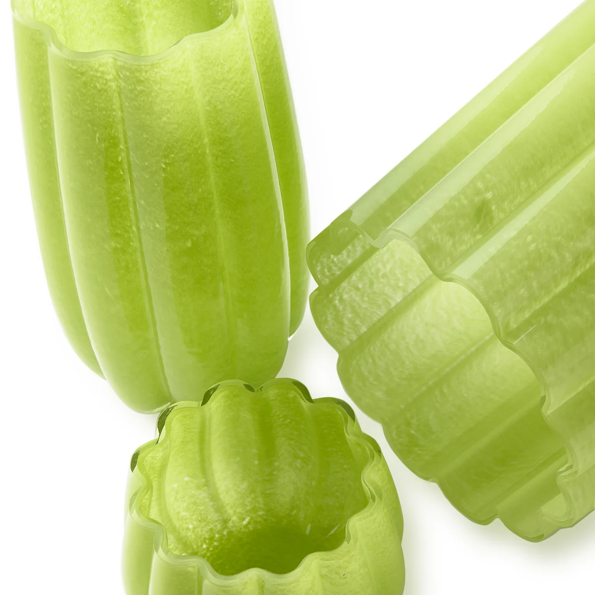 Die Melon Vase aus dem Hause Pols Potten begeistert mit seiner rundlichen Form und den frischen Farben. Melon wurde in Zusammenarbeit mit Floristen entwickelt, die Vase aus Glas wirkt aber auch ohne Blumenarrangements überaus kunstvoll. Die geriffelte Aussenseite der Vase erinnert mit seinem Design an traditionelle Terrakottatöpfe.