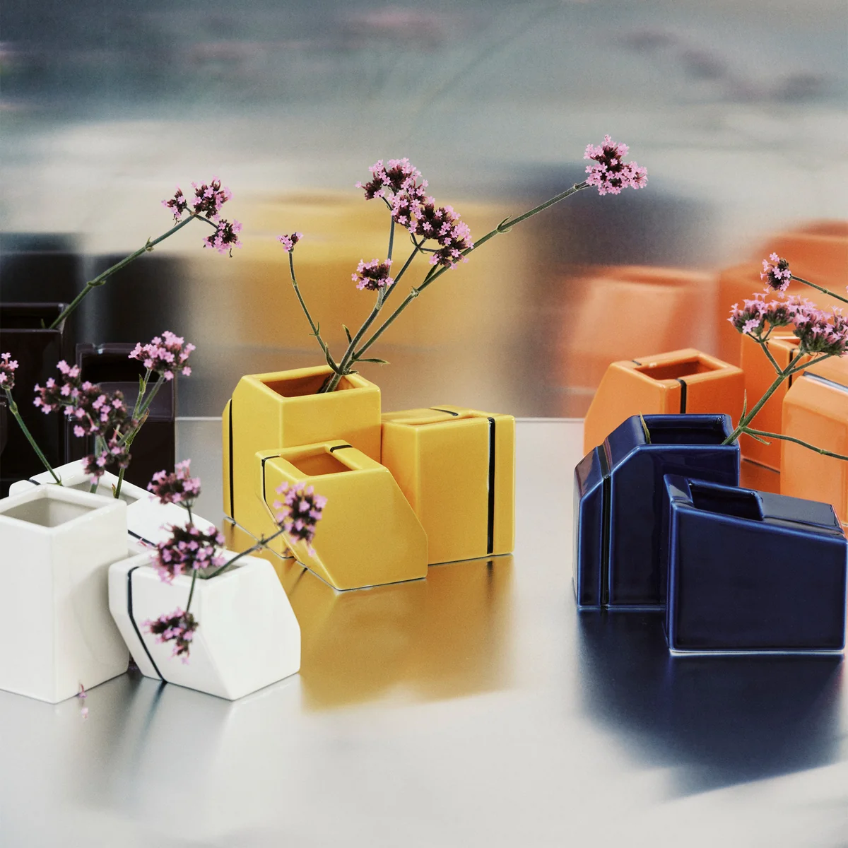 Die Silos Mini Vasen von Serax, entworfen von Plan C, bringen industrielle Inspiration in die Welt des modernen Wohnens. Aus hochwertigem Porzellan gefertigt, interpretieren sie markante, geometrische Formen neu und verwandeln diese in kleine Designobjekte voller Ausdruckskraft. Mit ihren verspielten Farben und unregelmässigen Konturen setzen die Vasen auffällige Akzente und verkörpern den rebellischen, kreativen Designgeist von Plan C. Ob einzeln oder kombiniert – sie verleihen jedem Interieur eine moderne, charakterstarke Note.