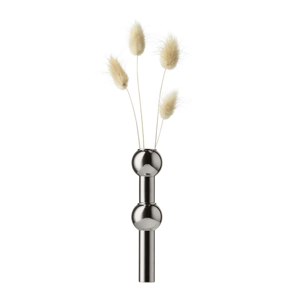 Die Vase von Stoff Nagel ist als natürliche Fortsetzung des charakteristischen Stoff Nagel-Ausdrucks konzipiert und kann sowohl an den Kerzenhaltern, der Schale als auch dem Ständer befestigt werden. Die Stoff Nagel Vase ergänzt das klassische Design um eine zusätzliche Dimension und ermöglicht es, eine farbenfrohe Blumendekoration nach Wahl in die Figur zu integrieren. Je nach Jahreszeit und Trend können sowohl frische als auch getrocknete Blumen in der Vase verwendet werden.