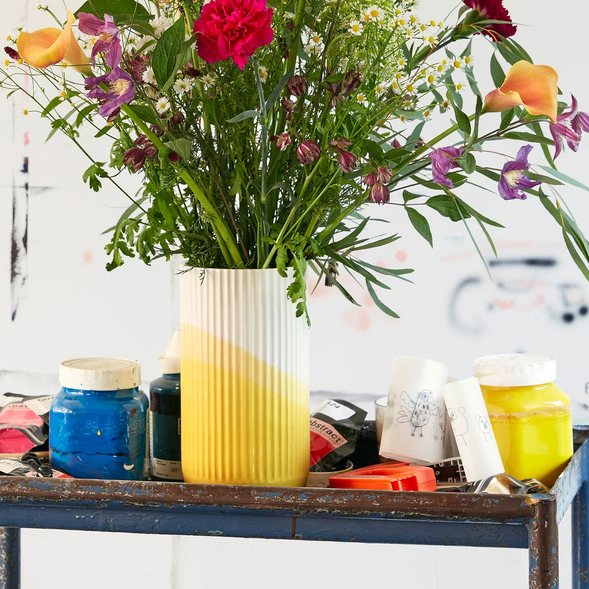 Neben der Vase ist auch eine Schale sowie ein Tablett in gleichem Stil erhältlich.