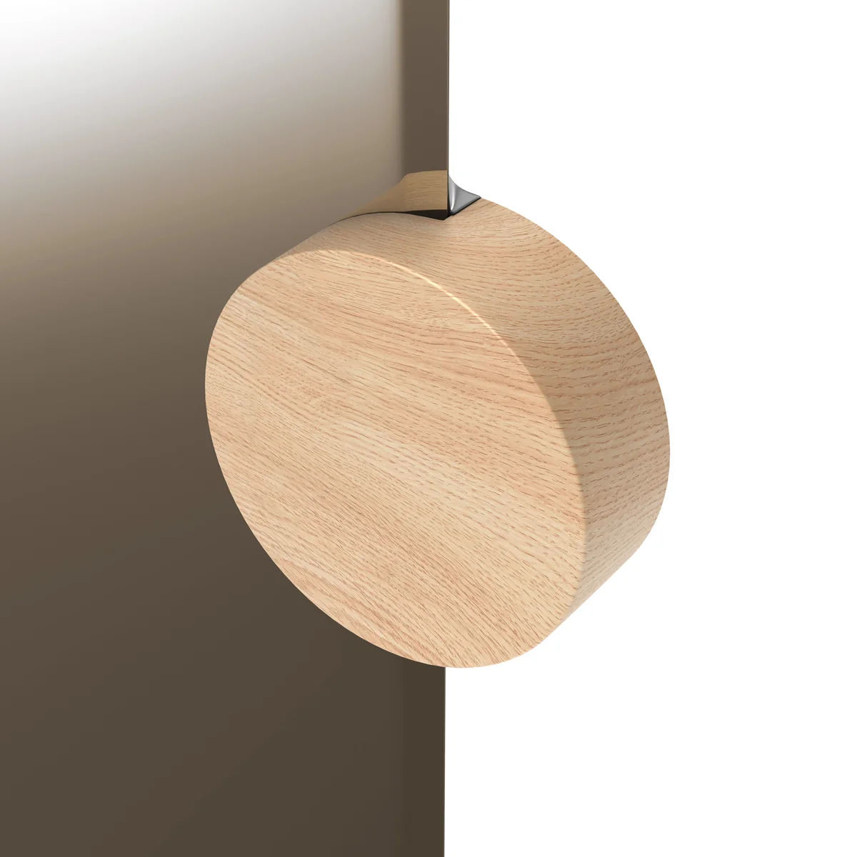 Der in Portugal gefertigte Sonia Spiegel besteht aus leicht getöntem Glas und wird durch einen Akzent aus massivem Eichenholz abgerundet. Er wird mittels einer Leiste an der Wand befestigt und kann sowohl horizontal als auch vertikal positioniert werden, ohne die Ausrichtung der Leiste zu ändern.