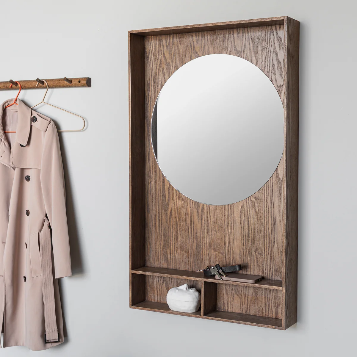 - Spiegel mit integrierter Ablage in elegantem Eichenfurnier