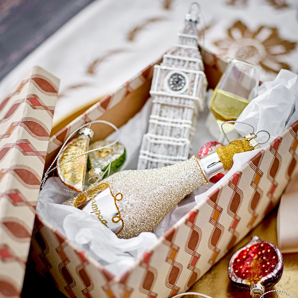 Das Jinal Ornament von Bloomingville ist der perfekte Weihnachtsschmuck für alle, die London lieben. Es ist aus Glas mit Golddetails in der Form von Big Ben gefertigt. Perfekt, wenn man dem Weihnachtsbaum mehr Persönlichkeit verleihen möchten.