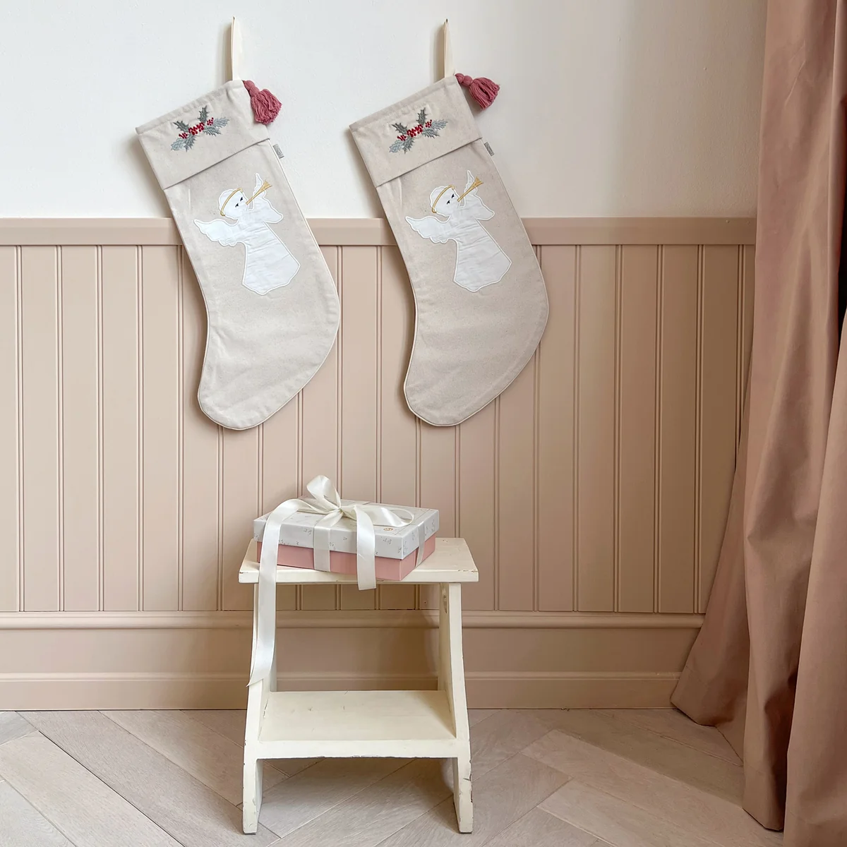 Der Weihnachtsstrumpf von Cam Cam Copenhagen verkörpert pure Weihnachtsmagie – liebevoll gestaltet, um kleine und grosse Herzen zu erfreuen. Mit charmanten weihnachtlichen Motiven und einem verspielten Pompon versehen, wird er schnell zum Mittelpunkt Ihrer festlichen Dekoration. Ob am Kamin, im Flur oder am Bettende aufgehängt – dieser Strumpf ist perfekt, um kleine Geschenke, Süssigkeiten und Überraschungen stilvoll zu präsentieren. Ein zeitloses Stück, das Jahr für Jahr Freude und Wärme in Ihr Zuhause bringt.