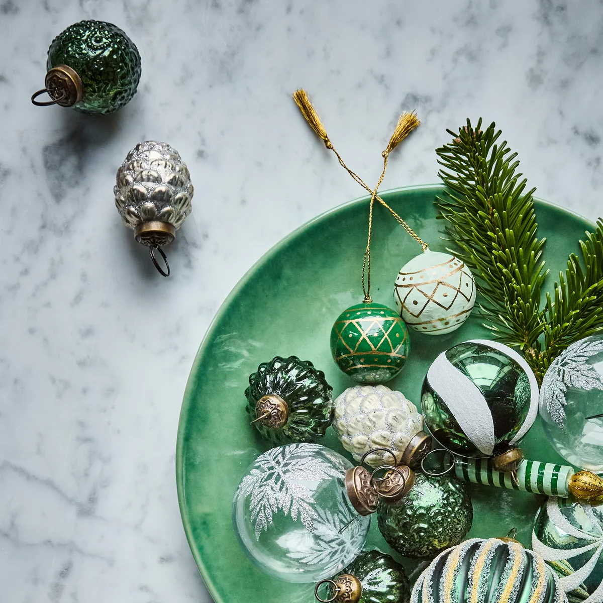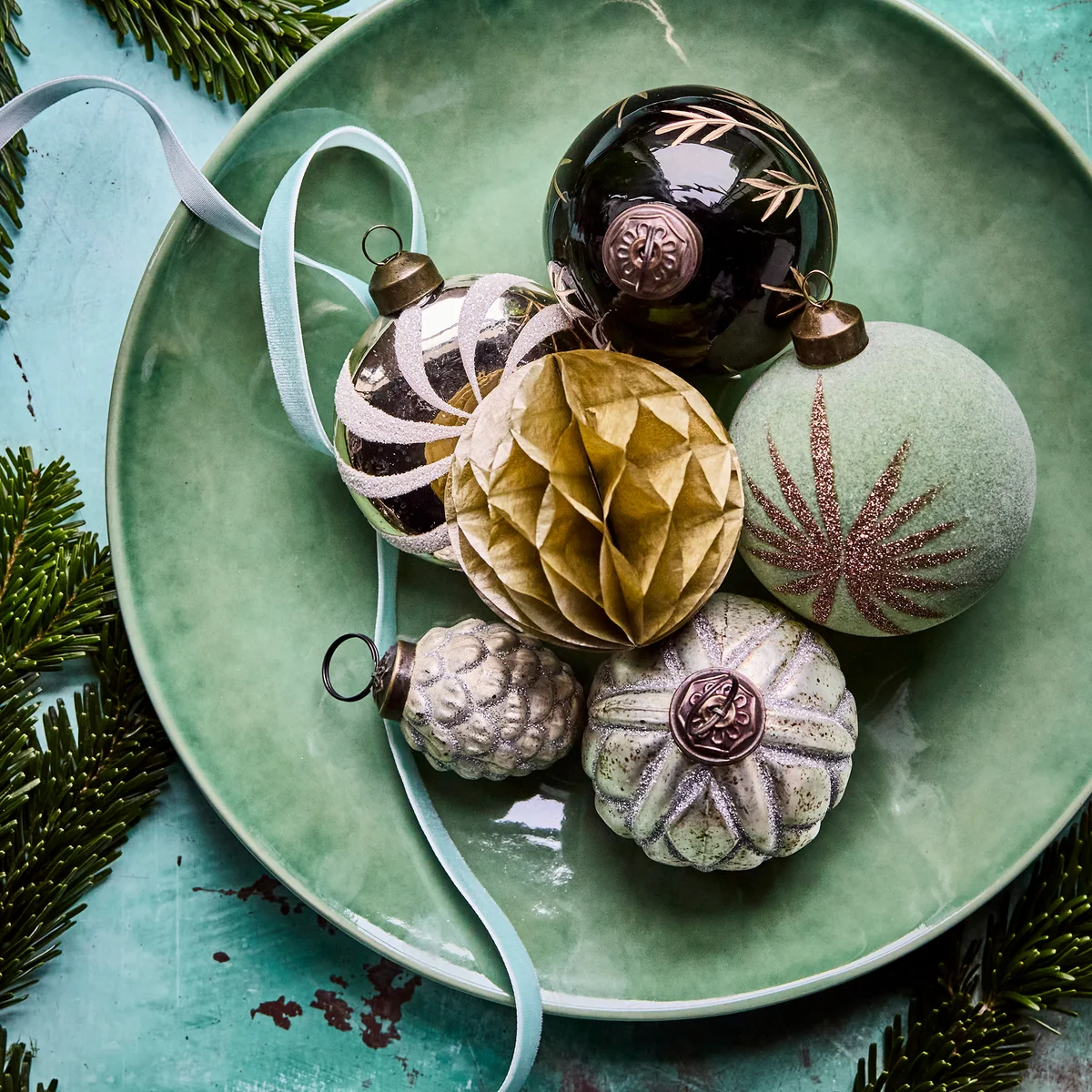 Die Cone Ornamente von House Doctor schmückt den Weihnachtsbaum auf eine elegante und klassische Art und Weise. Die funkelnden Tannenzapfen wirken geheimnisvoll und elegant und bringen den Weihnachtsbaum zum Strahlen. Sobald die Lichter gedimmt werden, beginnen die Tannenzapfen sanft zu leuchten und erzeugen eine zauberhafte Atmosphäre im Raum. In einem praktischen 6er-Set, kann der Schmuck für jede Wohneinrichtung verwendet werden.