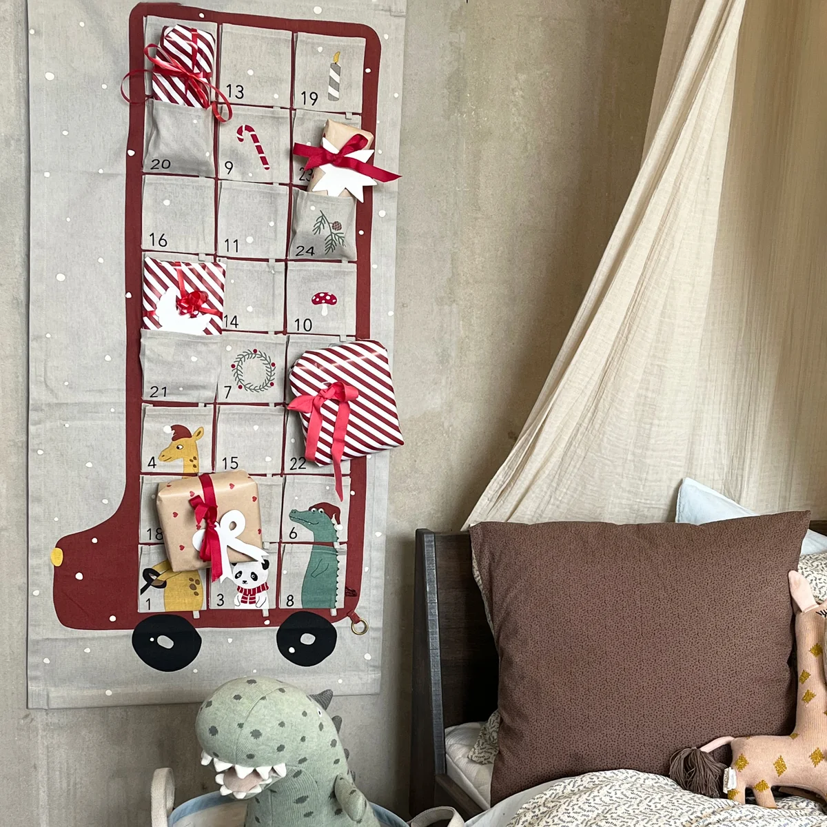 Der Bus Weihnachtskalender von OYOY ist aus 100 % Bio-Baumwolle gefertigt und zeigt aufgedruckte Figuren von OYOY-Tieren. Dank der 24 kleinen Päckchen kann mit diesem charmanten Kalender die Zeit bis Weihnachten spielerisch verbracht werden. Der Kalender bringt eine gemütliche und festliche Atmosphäre in das Zuhause bringt.