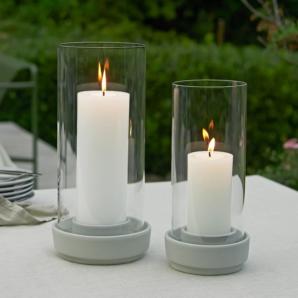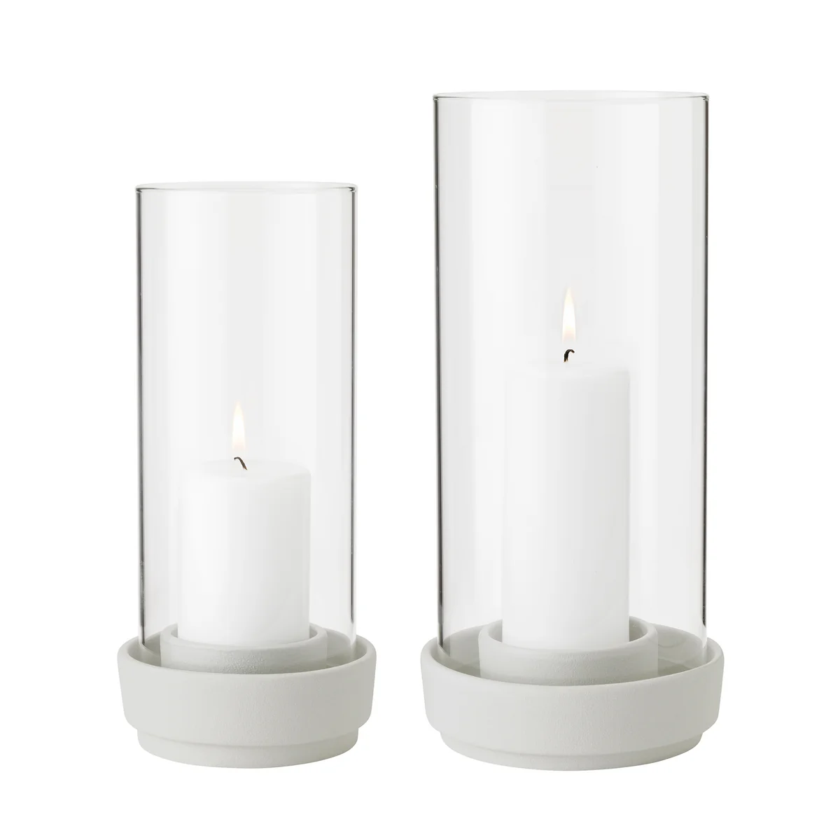 Mit ihrem Sinn für das Schlichte hat Maria Berntsen stilechte Windlichter entworfen, die für eine ganz besondere Atmosphäre sorgen und zu jeder Jahreszeit zum Einsatz kommen können. Die Basis der Windlichter wird aus Steingut hergestellt und die Flamme der Kerze wird durch einen Glastrichter geschützt. So ist Hurricane wetterfest und kann sogar bei Frost im Freien stehen bleiben. Bei Regen läuft das Wasser über Löcher in der Basis ab.