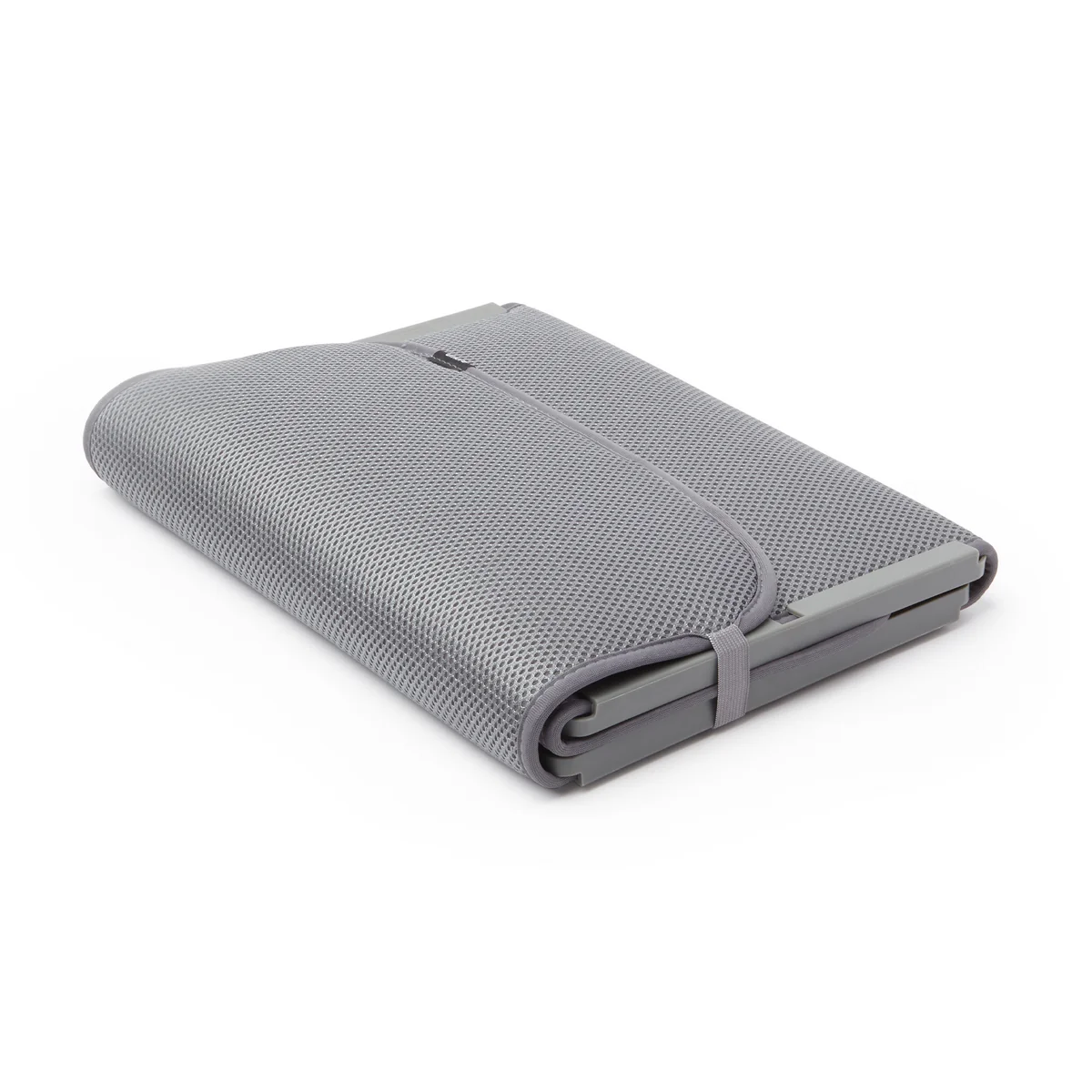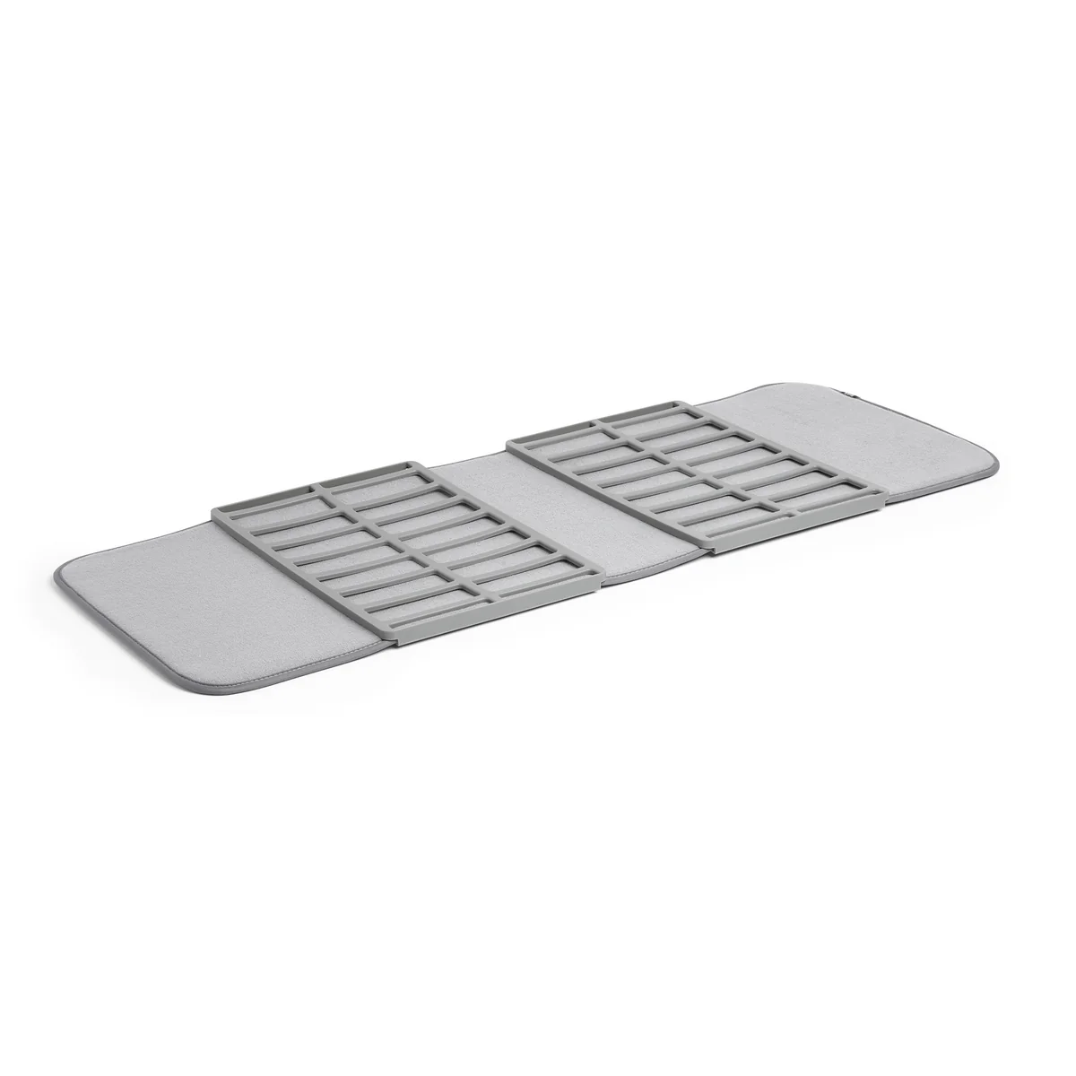Die Shoe Dry Schuhabtropfmatte mit integriert Schuhablage von Umbra ist eine wasserabsorbierende Schaumstoffmatte mit zwei aufsteckbaren Schuhablagen. Durch die erhörte Lagerung können Ihre Schuhe schneller abtrocknen als gewöhnlich. Dank ihres Designs ist Shoe Dry überaus flexibel und kann situationsabhängig eingesetzt werden. Sie kann zudem ganz einfach zusammengerollt werden, sodass sie wenig Platz in Anspruch nimmt. Die Shoe Dry Schuhabtropfmatte ist besonders für den Flur geeignet. Sie bietet Platz für bis zu vier Paar Schuhe und misst 89 x 33 x 1,5 cm.