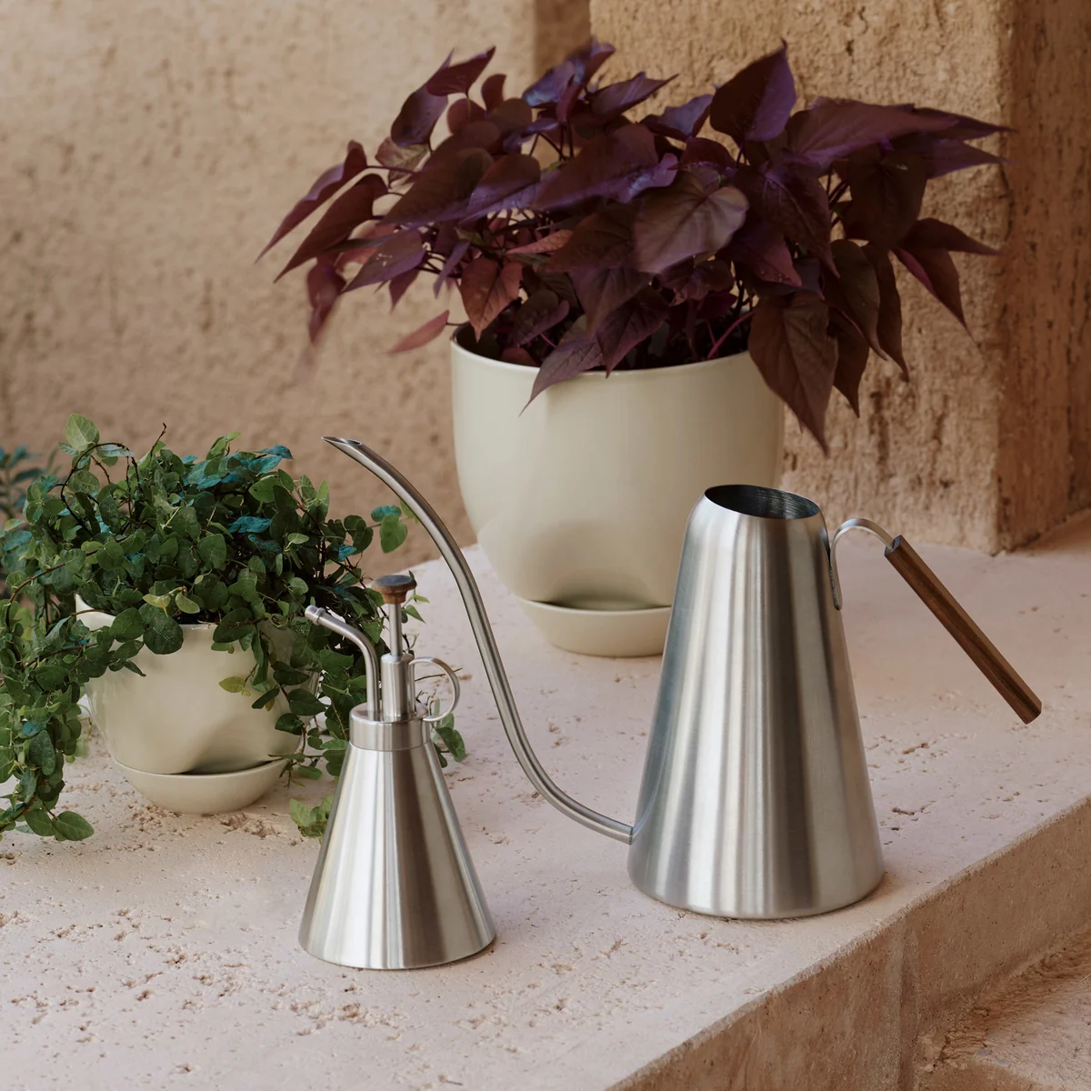 Die Hydrous Sprühflasche aus dem skandinavischen Hause Audo besticht mit dem Einsatz eleganter Materialien und dem überaus funktionellen Design. Die Sprühflasche wurde speziell für Aufsitzer-Zimmerpflanzen konzipiert und hinterlässt einen äusserst feinen Nebel auf den Blättern von Sukkulenten, Orchideen und Co. Der Nebel erhöht die Luftfeuchtigkeit und vermeidet das Faulen der Pflanzen. Hydrous wird aus gebürstetem Edelstahl und Akazienholz gefertigt.
