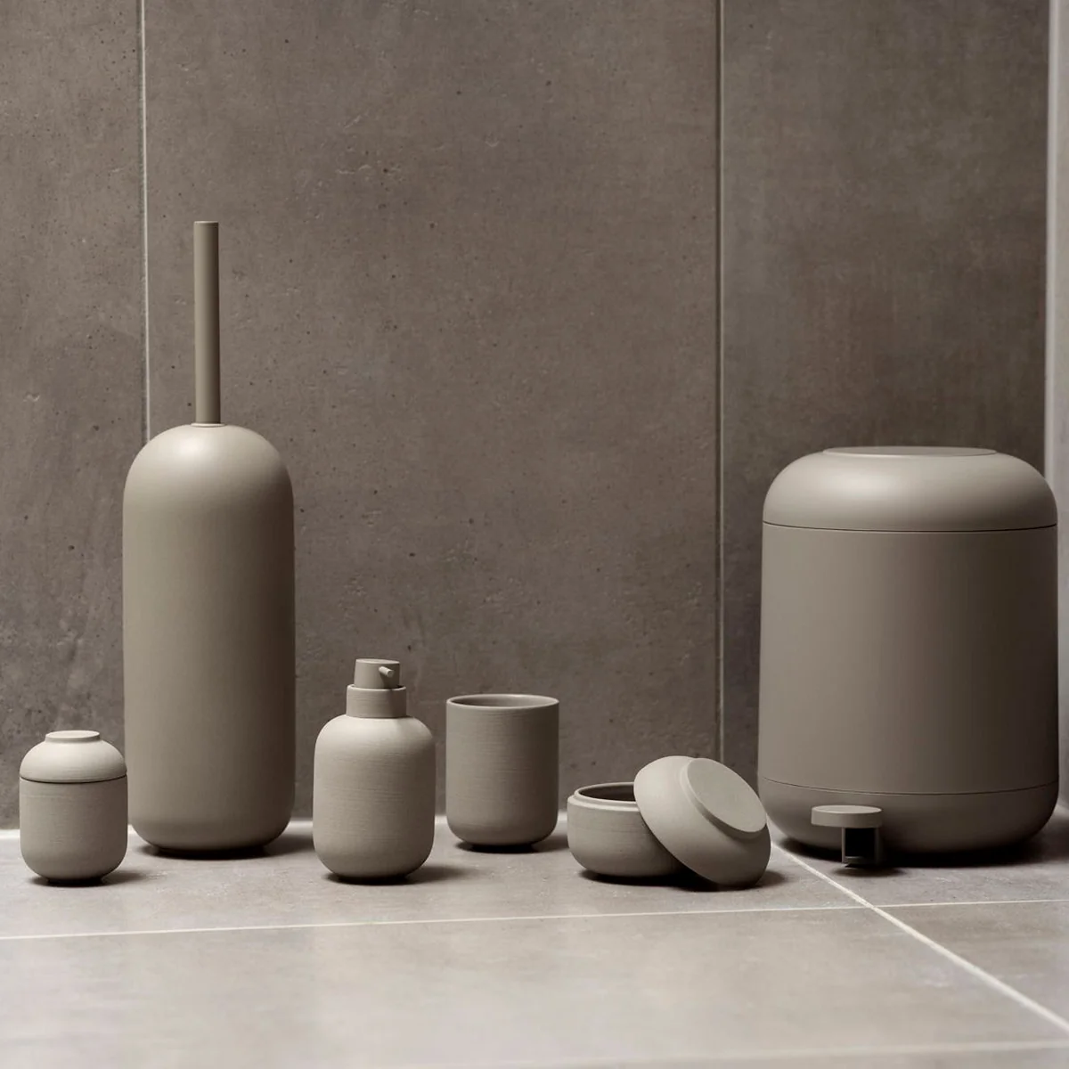 Die japanisch inspirierte Sensu-Serie vereint klares Design mit funktionaler Eleganz. Der 4-Liter-Treteimer besticht durch seine sanften Rundungen und eine harmonische Formgebung, die sich nahtlos in moderne Badezimmer einfügt. Sein bauchiger, zylindrischer Korpus wird durch zwei kreisförmige Designelemente ergänzt: Ein dekoratives Detail auf dem Deckel und das kleine, runde Pedal an der Vorderseite. So verbindet der Treteimer Minimalismus mit durchdachter Funktionalität.