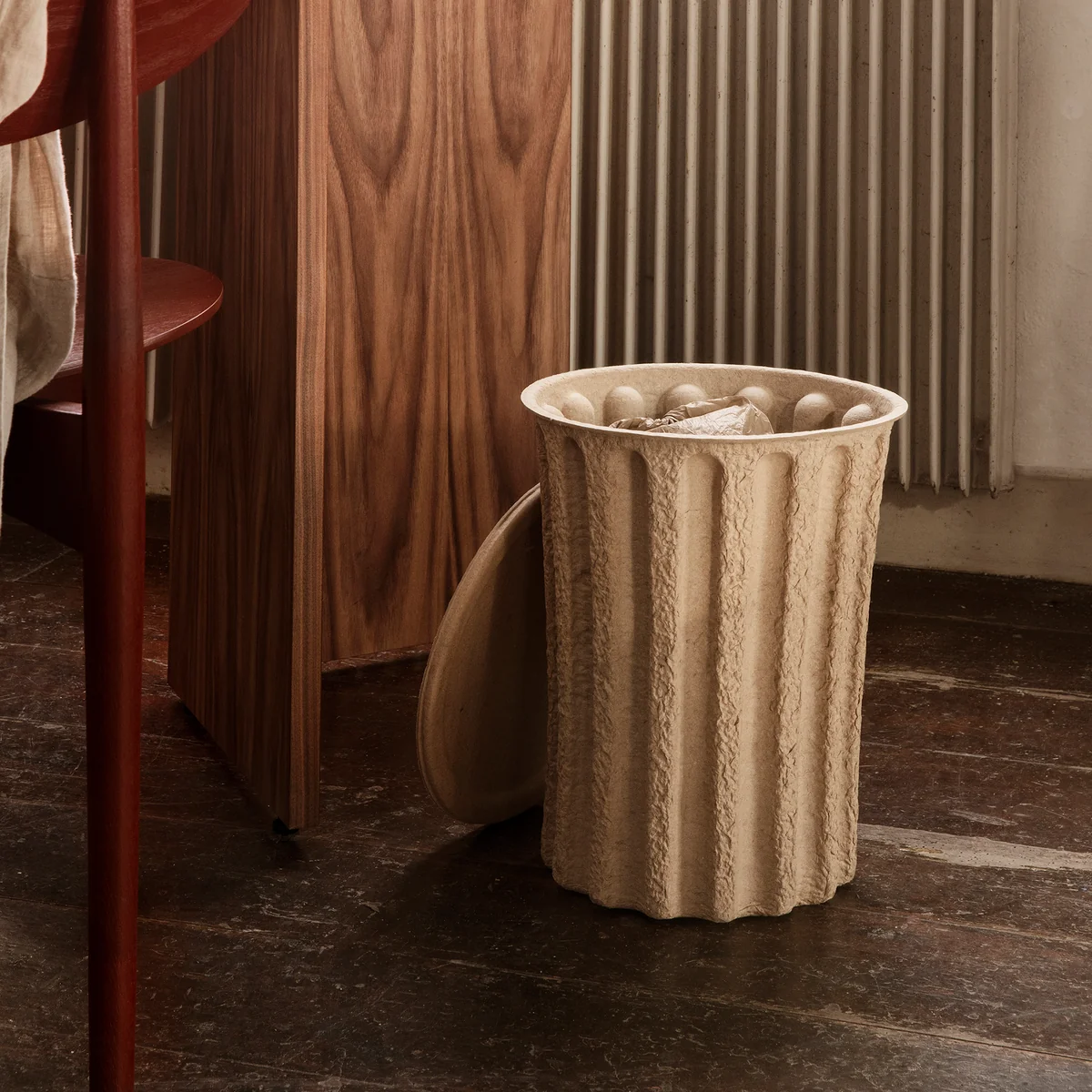 Der umweltfreundliche Paper Pulp Papiereimer von Ferm Living wird aus 100 % recyceltem und biologisch abbaubaren Papierzellstoff hergestellt. Als zylindrischer Behälter mit Deckel dient Paper Pulp jedoch nicht nur als Papierkorb. Alternativ kann er auch für die Aufbewahrung von Geschenkpapier oder weiteren Gegenständen genutzt werden, die nicht täglich in den Einsatz kommen. Dabei ist Paper Pulp sehr leicht und zudem stapelbar.