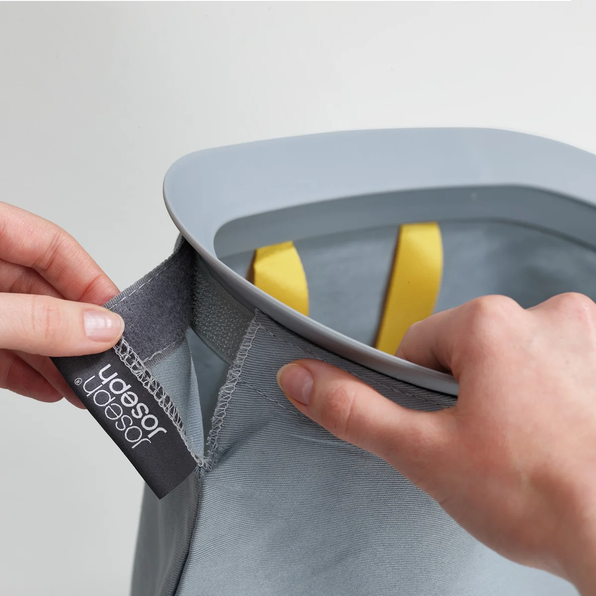Beim Austauschen der einzelnen Beutel im Korb müssen keine umständlichen Bänder oder Knöpfe angebracht werden, denn der Rand sorgt dafür, dass der Beutel perfekt an seinen Platz fällt.