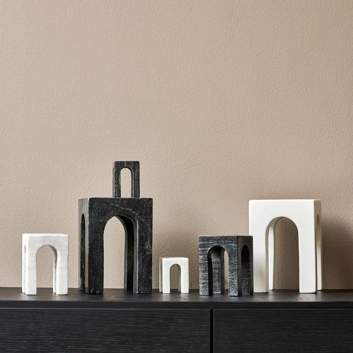 Arkis kann flexibel als Dreier-Objekt oder getrennt voneinander platziert werden. Die Buchstütze wird aus Marmor hergestellt und ist in zwei verschiedenen Farben erhätlich.