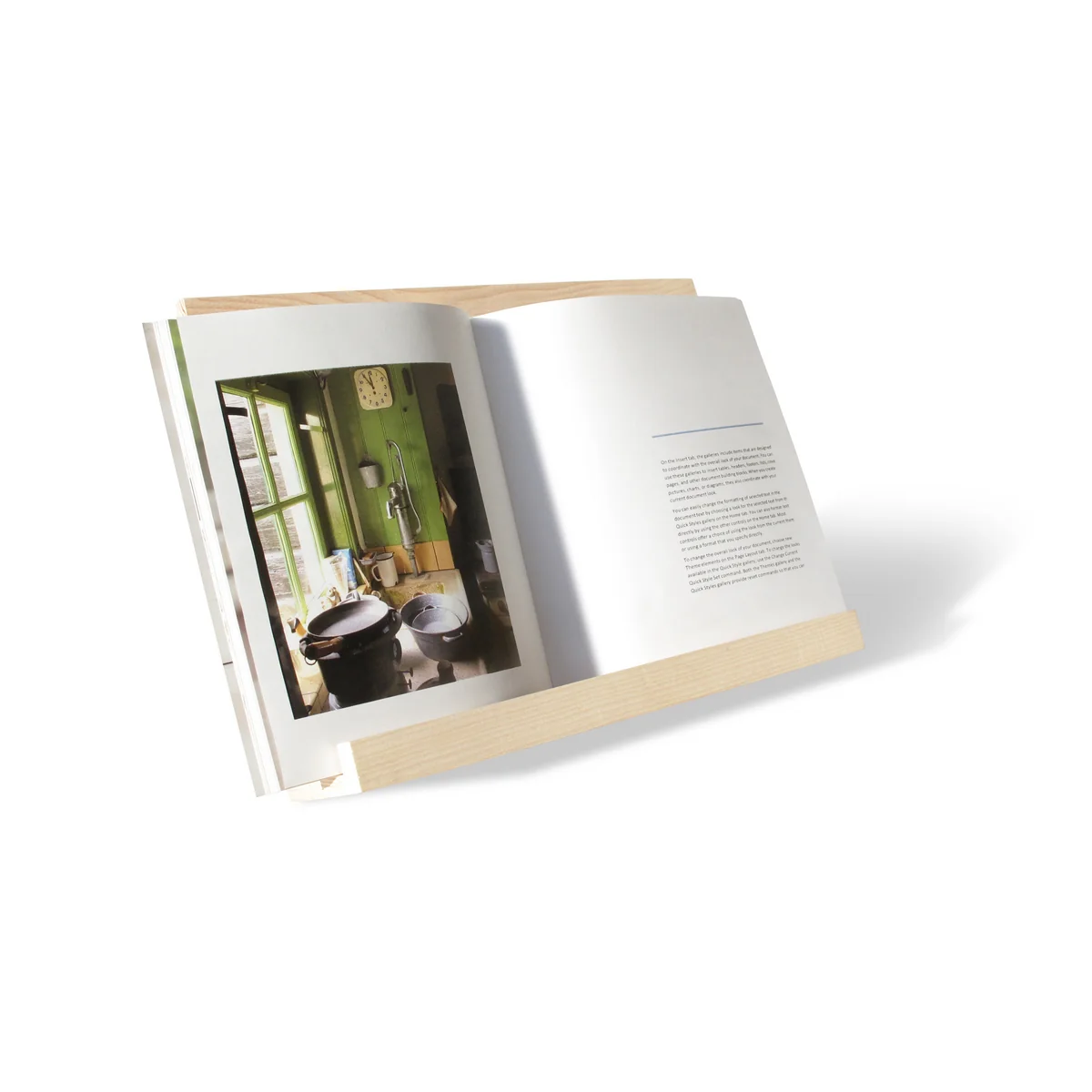 Dieser natürlich schöne Buchständer von side by side hält dank seiner robusten Eschenholz-Konstruktion auch grosse, schwere Bücher sicher und fest. Gleichermassen eignet er sich aber für Zeitschriften, Tablets und Kochbücher. Ein starkes Multitalent!