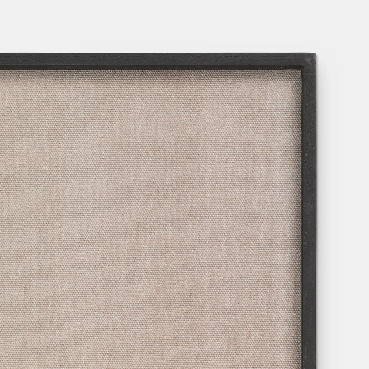 Die Pinnwand besteht aus einem Gestell aus schwarz gebeiztem Eschenholz und einer Korkbasis, die mit beigefarbenem Baumwoll- / Leinenstoff bezogen wurde. Der helle Stoff und das dunkle Holz sorgen für einen schönen Kontrast der sich gut in modernen Einrichtungen macht. Die Pinnwand fügt sich problemlos in verschiedene Wohnräume ein und macht sich toll im Flur, in der Küche, im Arbeitszimmer oder über dem Schreibtisch im Kinderzimmer.