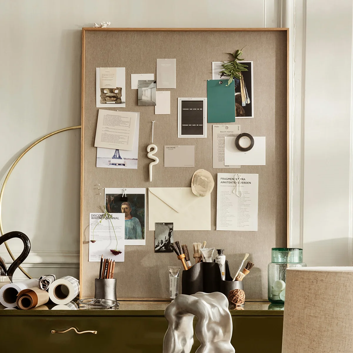 Die Scenery Pinnwand von Ferm Living ist eine schöne Möglichkeit Karten, Fotos, Termine und Inspirationen auf stilvolle Art und Weise zu ordnen und zu visualisieren. Angelehnt oder an die Wand montiert trägt die Pinnwand zu einem organisierten Alltag bei und Termine oder Ideen werden auf diese Weise nicht vergessen.