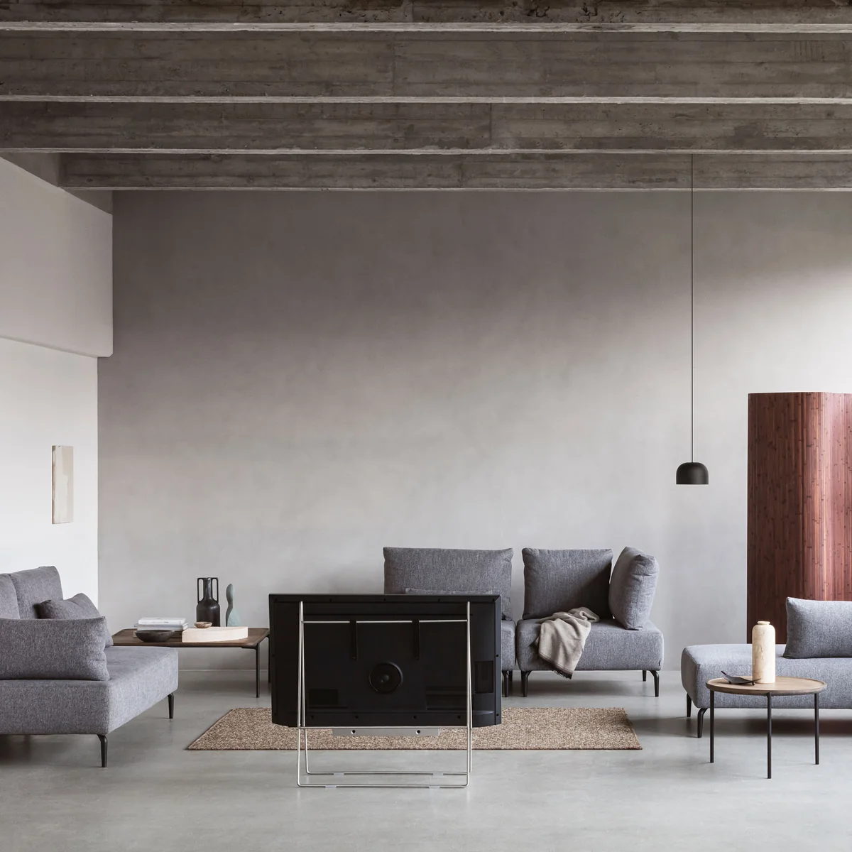 Der Carry TV-Ständer von Eva Solo ist ein luxuriöses Gestell, das Flachbildfernseher vom Boden hebt und sie dadurch förmlich schweben lässt. Die Konstruktion erinnert an eine Staffelei, sodass der TV zum Kunstwerk wird. Dank Lederriemen an der Ständerrückseite liegt der Fernseher nicht nur stabil und sicher, sondern wird auch seine rückwärtige Seite deutlich ansehnlicher. Somit kann der Carry TV-Ständer auch als Raumteiler im Wohnzimmer verwendet werden.