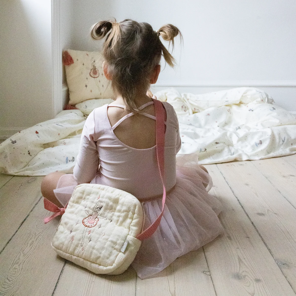 Gefertigt aus 100 % Bio-Baumwolle und gestaltet mit den charakteristischen, sanften Prints der Marke, verbindet die Umhängetasche nachhaltige Materialien mit zeitlosem skandinavischem Design. Der praktische Reissverschluss sorgt dafür, dass alles sicher verstaut bleibt, während der verstellbare Schulterriemen die perfekte Passform für Kinder verschiedener Altersstufen möglich macht.