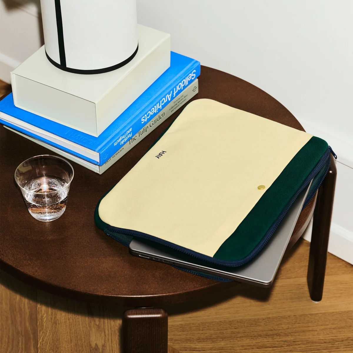 Das Multi Laptop Cover von HAY kombiniert durchdachten Schutz mit modernem Design. Gefertigt aus langlebiger Bio-Baumwolle, überzeugt die Hülle mit einem farbenfrohen, zweifarbigen Look, der Funktionalität und Ästhetik vereint. Praktische Aussentaschen mit sicheren Verschlüssen bieten zusätzlichen Stauraum für Kabel, Stifte oder Notizen. Dank des extra langen Reissverschlusses lässt sich der Laptop mühelos ein- und auspacken – ideal für den täglichen Einsatz zu Hause, im Büro oder unterwegs.
