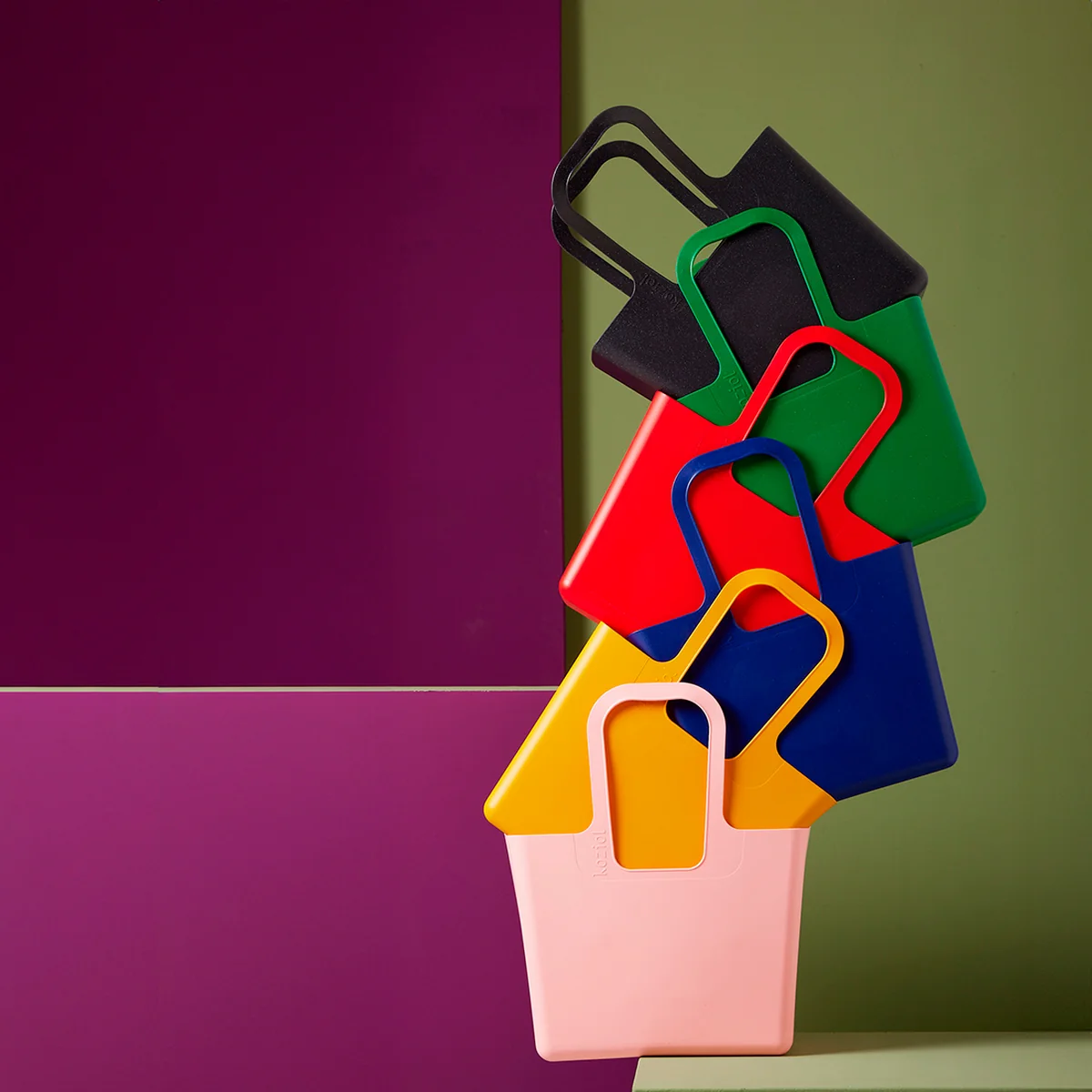 Oft sind es die einfachen Dinge, die den Alltag leichter und ein bisschen schöner machen. Die Tasche XL von Koziol ist so ein Produkt: Die Form der Tragetasche wurde durch den klassischen Einkaufskorb inspiriert, doch ist sie handlicher und dadurch leichter und bequemer zu tragen. Durch ihre konsequente Formgebung ist im Inneren der leichten Tragetasche dennoch Platz für allerlei Einkäufe.