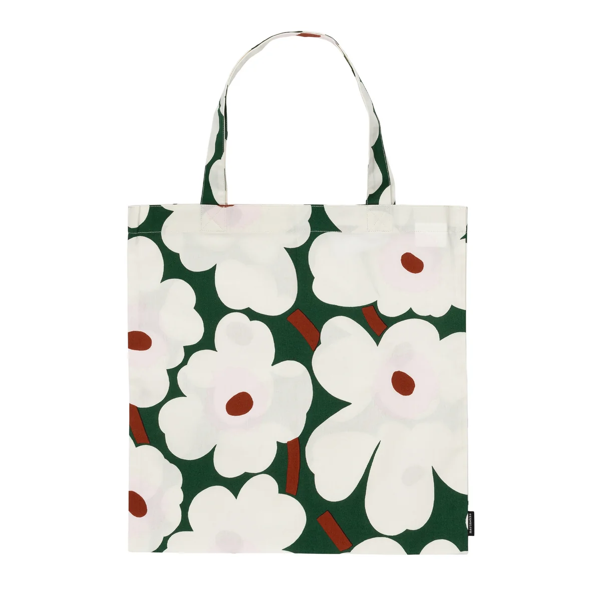 Diese Unikko Einkaufstasche von Marimekko wird von einem grosszügigen Blumenmuster bedeckt, was sie zum Hingucker in jedem Geschäft macht!