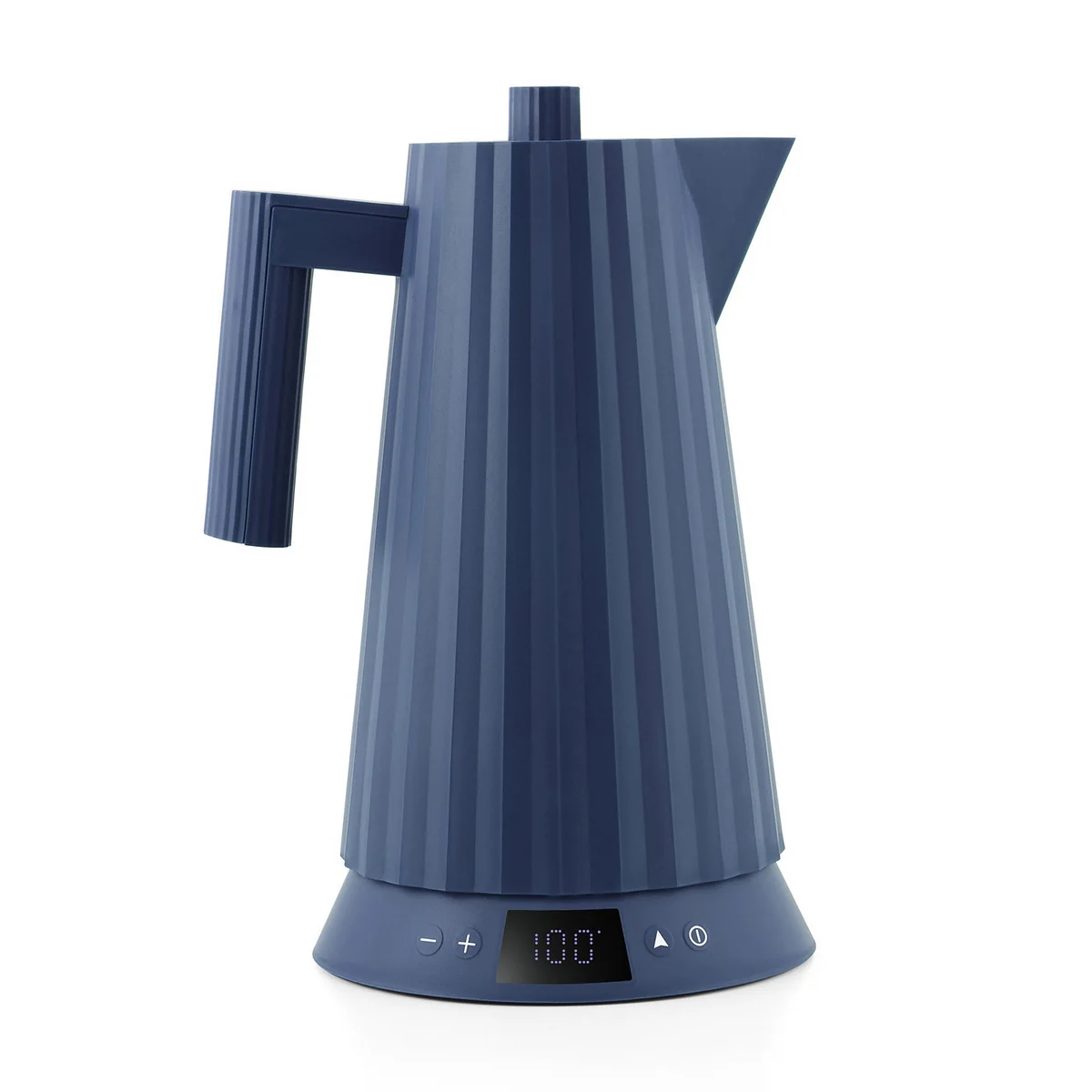 Der elektrische Wasserkocher Plissé von Alessi vereint skulpturales Design mit praktischer Technik. Entworfen von Michele De Lucchi und gefertigt aus hochwertigem thermoplastischem Harz, beeindruckt er durch seine elegante, von plissierten Stoffen inspirierte Form. Die integrierte Temperaturregelung ermöglicht eine präzise Steuerung für verschiedene Getränke – von grünem Tee bis Kaffee.