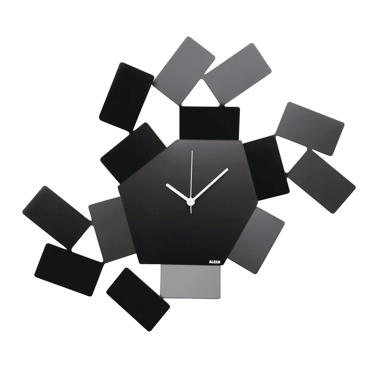 Die unregelmässigen Formen des sechseckigen Ziffernblattes und der seitlichen Elemente, erzeugen Licht- und Schattenspiele, die dem Gegenstand Magie und Bewegung verleihen. In verschiedenen Varianten begeistert das phantasievolle Design in unterschiedlichsten Interieur.