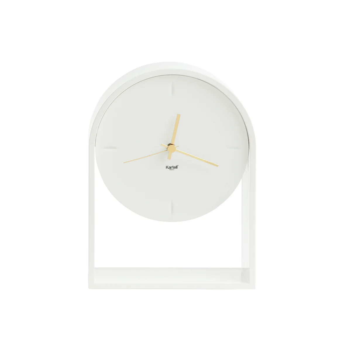 Bei der Air du Temps Tischuhr von Kartell handelt es sich um einen Entwurf des katalanischen Designers Eugeni Quitllet, der bei seiner Arbeit besonderen Wert auf Extravaganz und Leichtigkeit gelegt hat. Während die Uhrzeit auf einem glänzenden Ziffernblatt in verschiedenen Farben angezeigt wird, ist der puristische Rahmen aus thermoplastischem Technopolymer gefertigt, das aufgrund seiner Transparenz für ein nahezu schwereloses Erscheinungsbild sorgt.