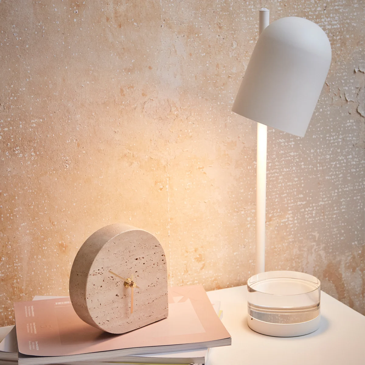 In einem schönen Marmordesign, bekommt die Uhr eine natürliche Optik, die sie elegant gestaltet. Die Uhr sorgt für dezente Details auf der Fensterbank, im Regal oder auf dem Schreibtisch. Mit Pampasgras oder anderen trockenen Pflanzen in einer schlichten Vase ergänzt, kann ein zurückhaltendes aber dennoch ausdrucksstarkes Einrichtungsdesign geschaffen werden, das modern und zugleich warm und wohnlich wirkt.