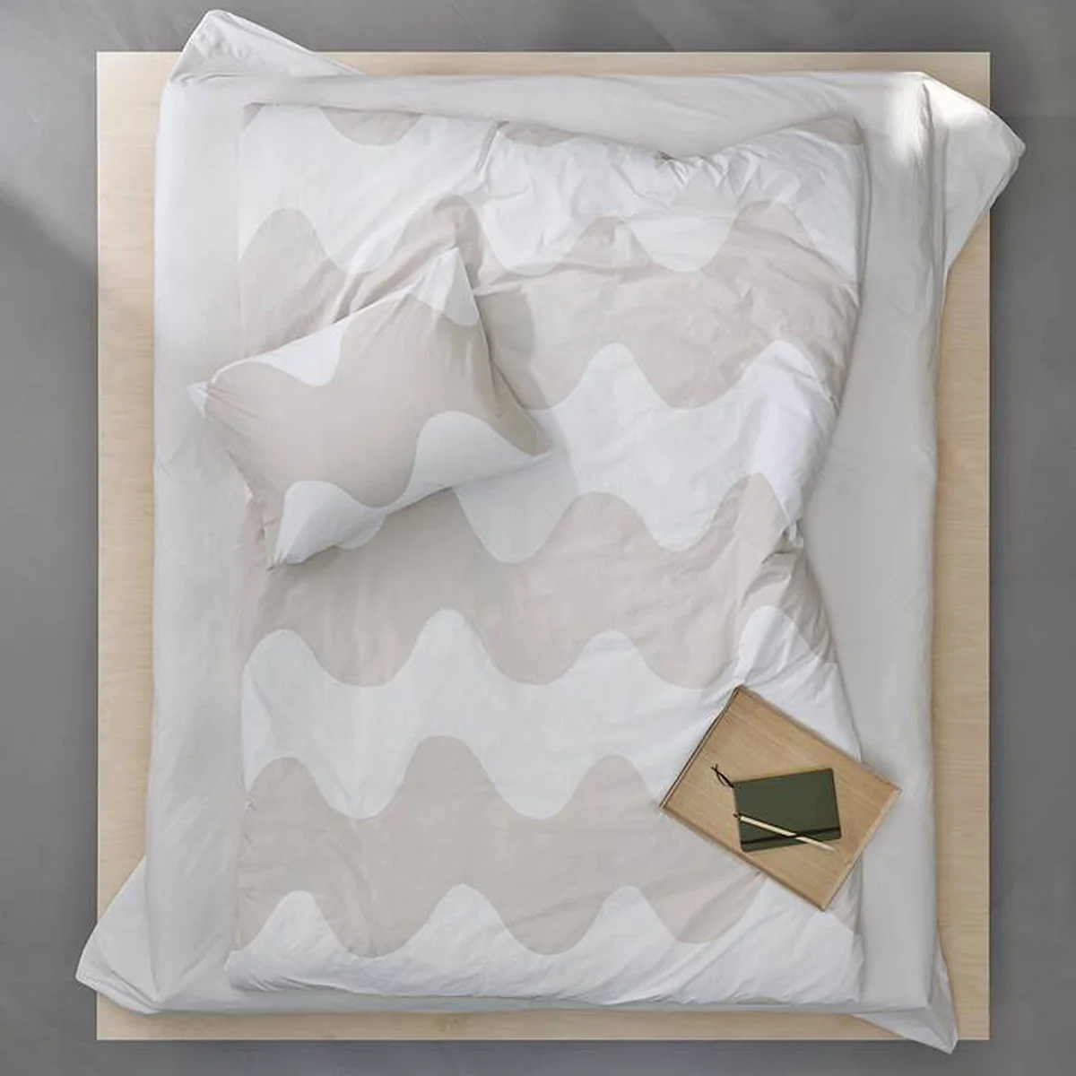 Die schöne Lokki Bettwäsche von Marimekko überzeugt durch ihr einzigartiges Wellenmuster und dezente Farbtöne, die sich gut in eine Vielzahl von Schlafzimmern einfügen. Mit Marimekkos Kissen- und Deckenbezügen lädt das Bett wie nie zuvor zum stilvollen Entspannen und Verweilen ein.