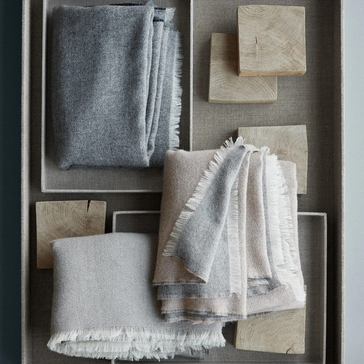 Die Venice Decke von Elvang ist wunderbar weich und zeichnet sich durch ihre eng gewebte Struktur mit kleinen Fransen an den Enden aus. Ihre zweifarbige Gestaltung spiegelt eine ruhige Farbpalette wieder, die sich hervorragend in jedes Ambiente einfügt. Die Venice Decke ist aus 74% superfeiner Alpakawolle und 26% Schafwolle gefertigt. Als Kuscheldecke auf dem Sofa oder Überwurf auf dem Bett kann die Venice Decke genutzt werden.